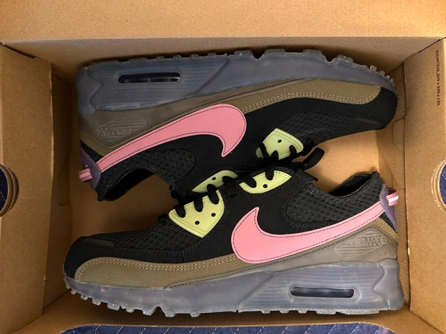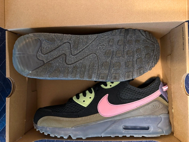Nike Air Max 90 Terrascape - Black Elemental Pink Size 12, comes with box. Price is firm. Like new. Worn once. Part of a private collection sale. If listing is up, item is available.