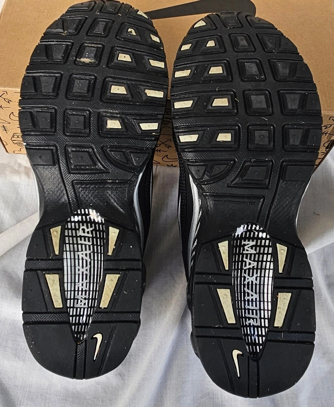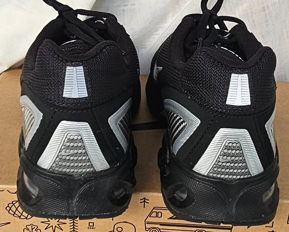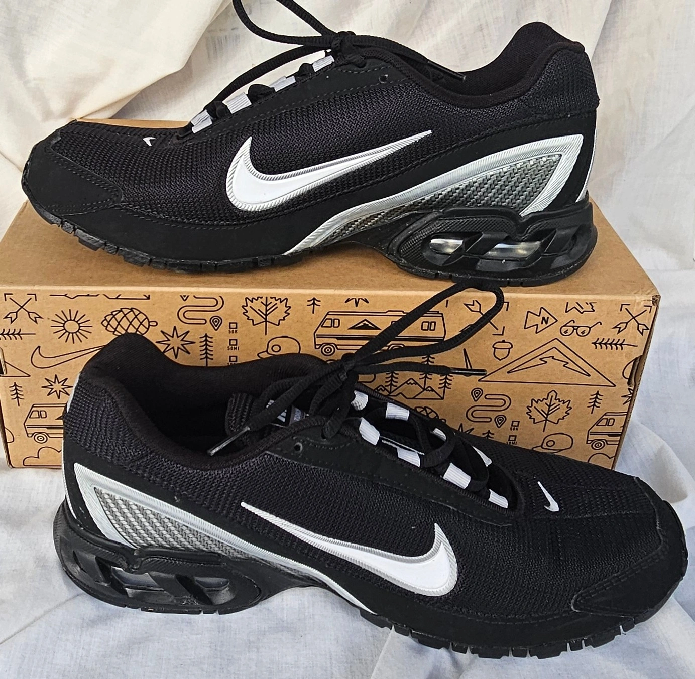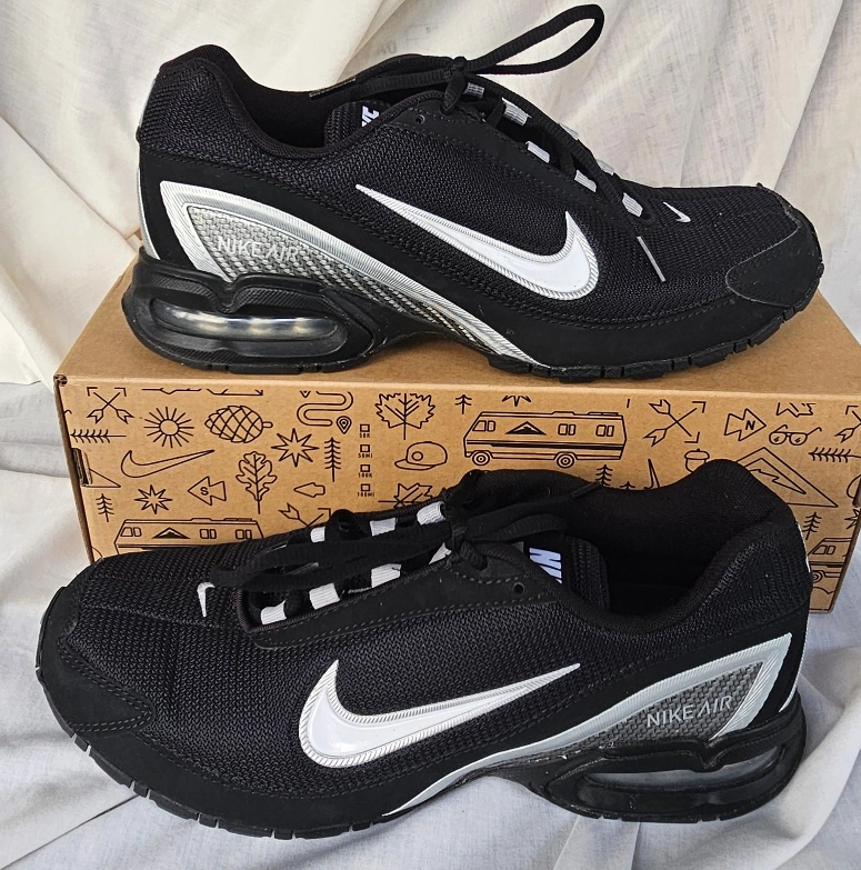 Nike Air Max Torch 3 Running Shoes Men’s Size 9.5 Black Mint This pair of Nike Men's Air Max Torch 3 Running Shoes Men’s Black Size 9.5 was used as a store display model. The shoes are in excellent cosmetic cond. There are no rips, tears or stains of any kind. Features: · Breathable mesh material for ventilation and cooling · Visible Max Air unit maximizes cushioning in the heel · Phylon midsole through the forefoot provides lightweight cushioning · Molded EVA sockliner boosts comfort and support underfoot · BRS 1000 carbon rubber under the heel maximizes abrasion resistance in this high-wear area