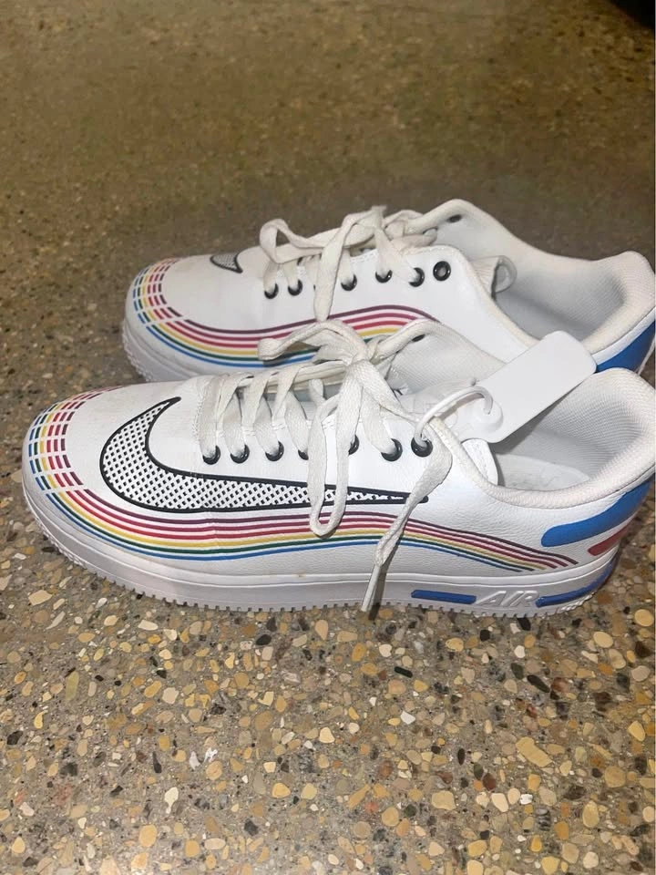 Nike Air Force 1 Custom – Size US 10. Unique custom pair of Nike Air Force 1s with a bold, one-of-a-kind design. Perfect for collectors, sneaker enthusiasts, or anyone looking to stand out with a statement piece. Size: US 10 Condition: Custom-made, never worn Style: White Air Force 1 with custom detailing Rarity: One-of-a-kind custom design A rare find for sneaker and fashion lovers alike.