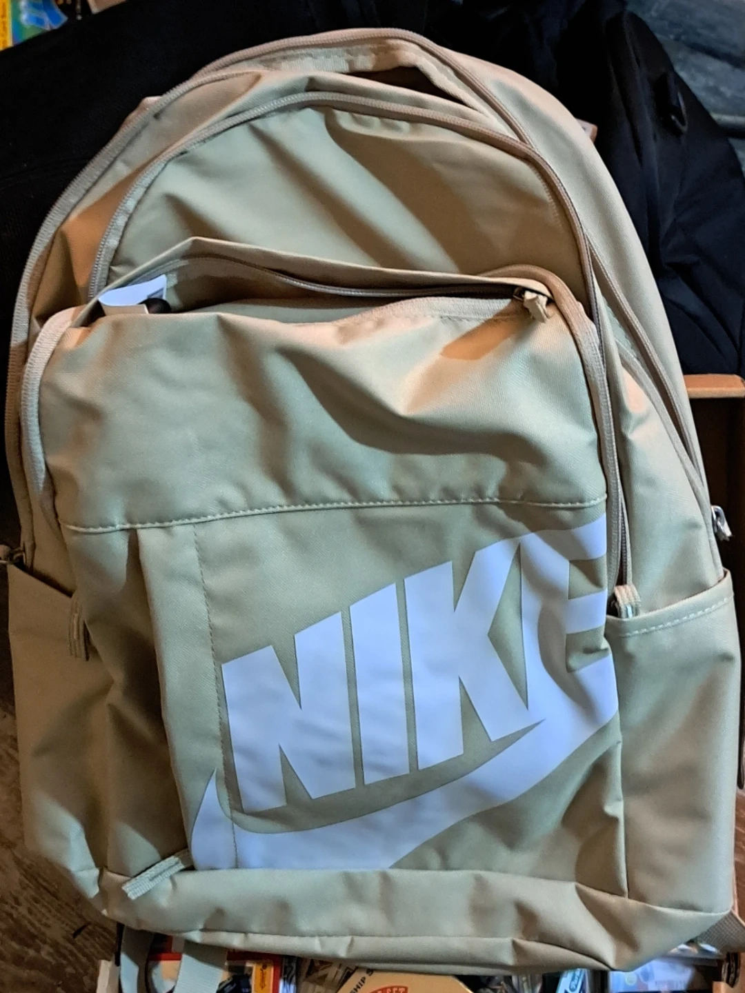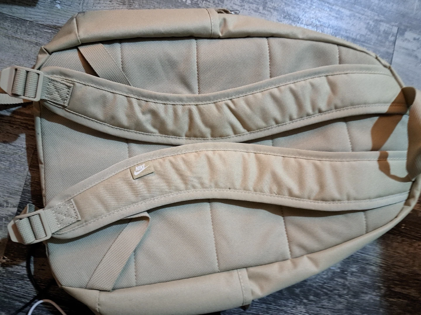 10Looking to pass along this Nike backpack! It's a neutral tan colour with a large white Nike logo on the front. The capacity is 21L, perfect for everyday use or school. Originally bought for $50 CAD