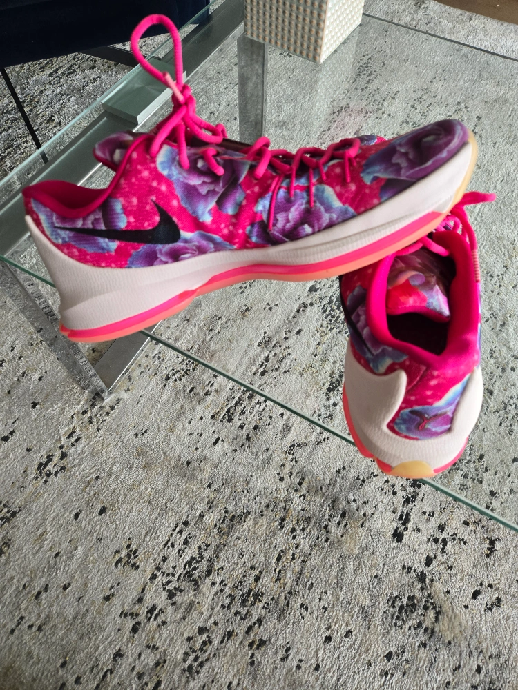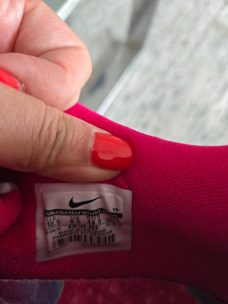 24Selling a pair of Nike running shoes in a vibrant pink colour! They are a size 10.5 US. The design is really eye-catching and would be great for running or casual wear. They have some wear on the sole, but overall they are in good condition!