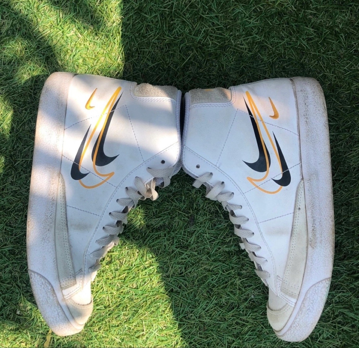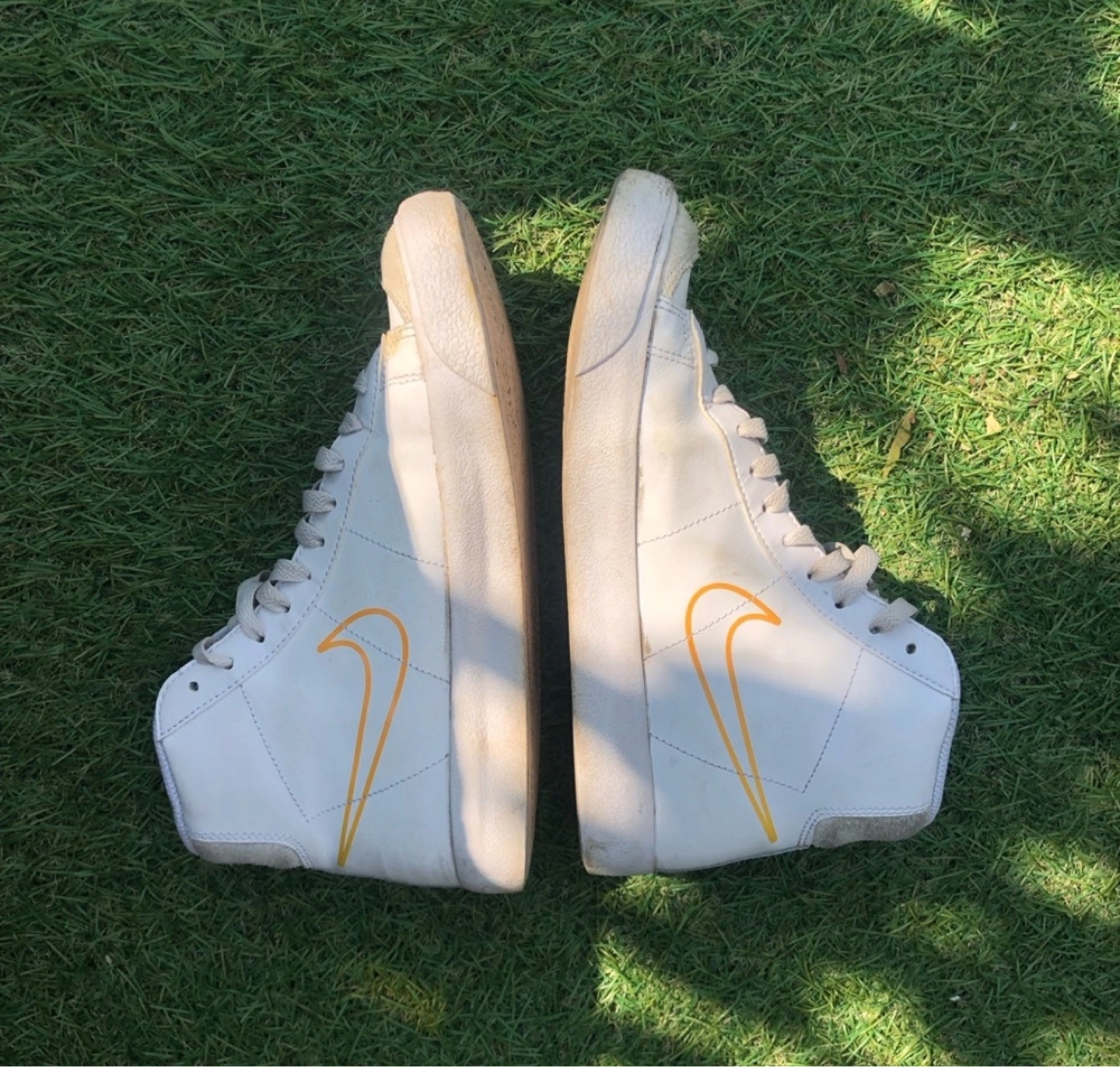 These are very cute and comfortable, limited edition Nike Blazers. Still in good condition. These are a 6.5Y so they fit like a 7.5/8 women’s.