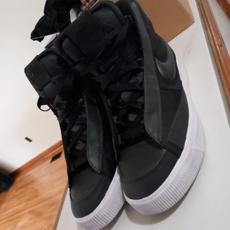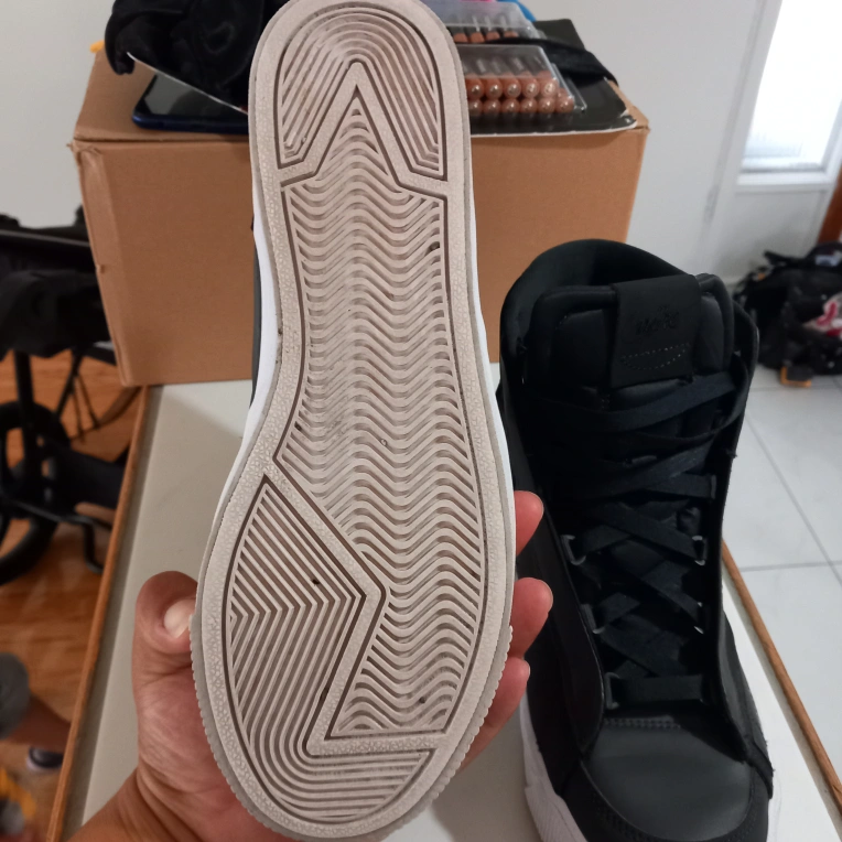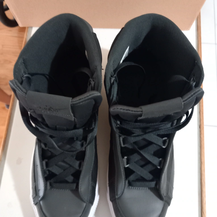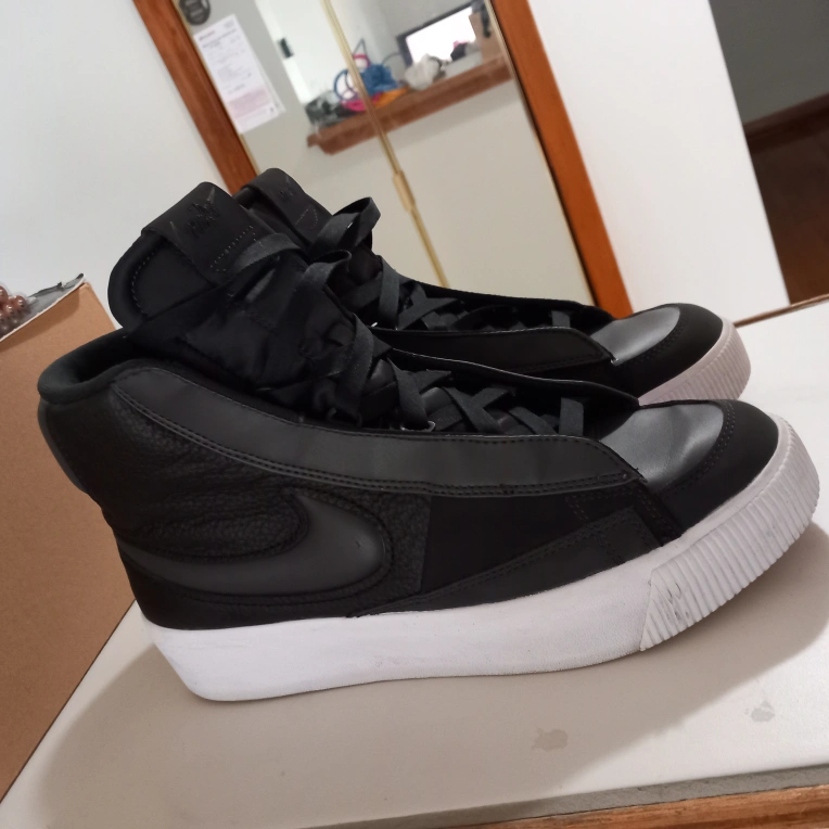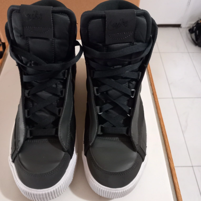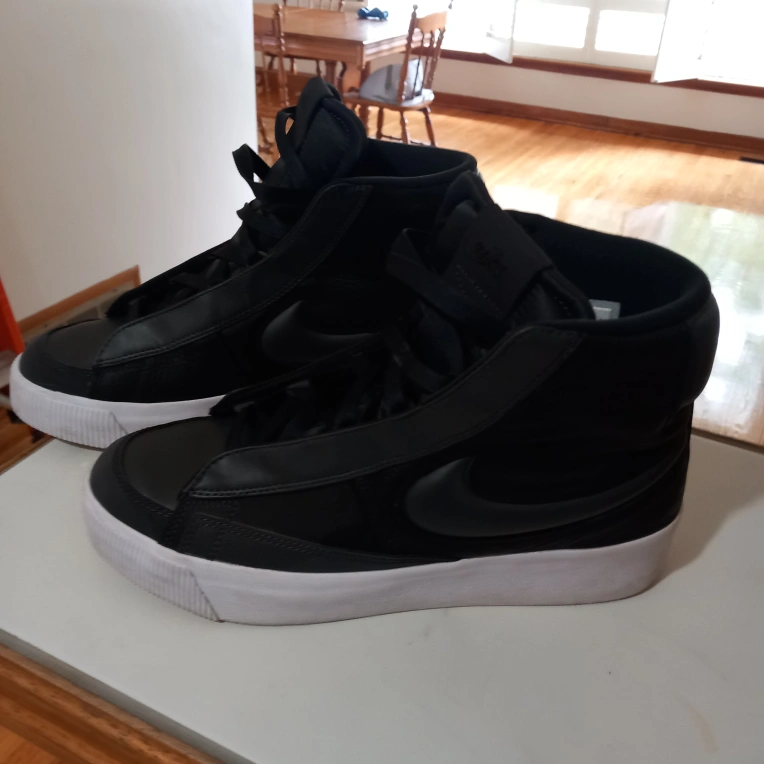 Selling a pair of Nike Blazer high-top sneakers in black. They're in great shape and ready for a new home! They have the classic Nike swoosh on the side and a cool high-top design.