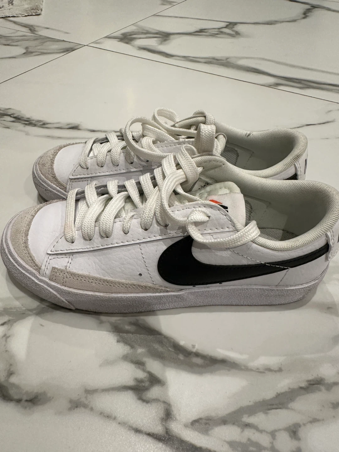 21Selling a pair of Nike Blazer Low sneakers in white and black. They're in good condition, ready for a new home!