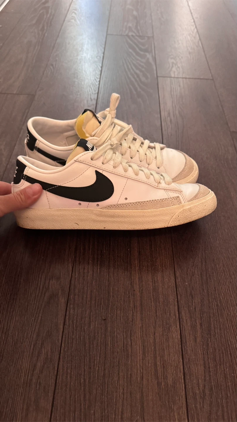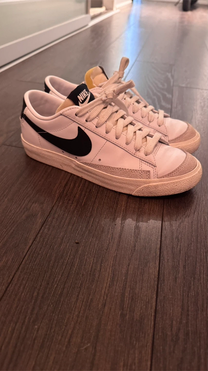 Selling a pair of Nike Blazer Low Leather sneakers in white and black. They are in great condition and are a size 6US. Great casual shoes!