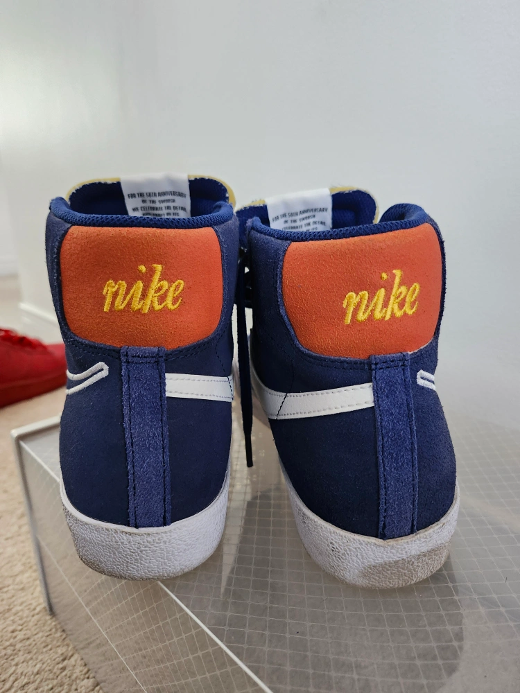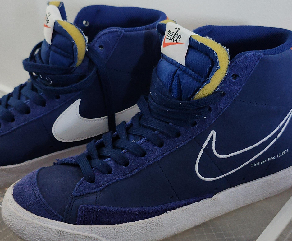 Selling a pair of Nike Blazer Mid '77 sneakers in a cool blue colour! These have a retro vibe with the 'First use June 18, 1971' detail. They're in excellent condition and ready for a new home. Worn maybe 3 times