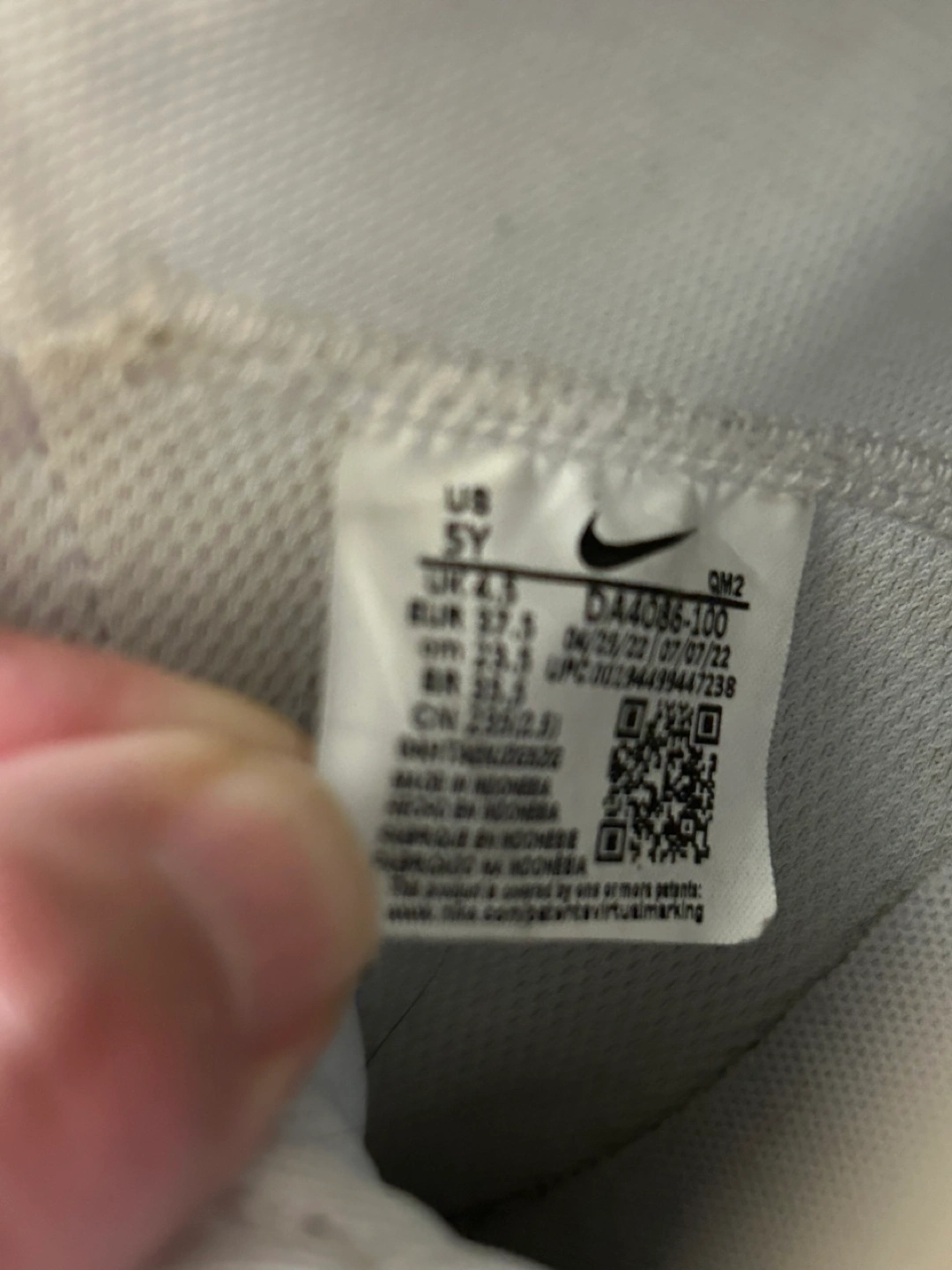 10White leather high top sneakers. Black swoosh logo. Pre-owned. Good condition. Size US 7.5, UK 5.5, EUR 38.5.