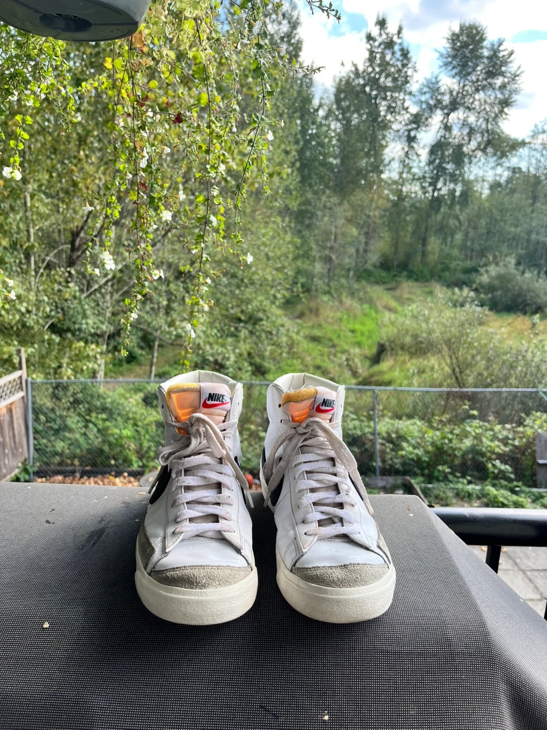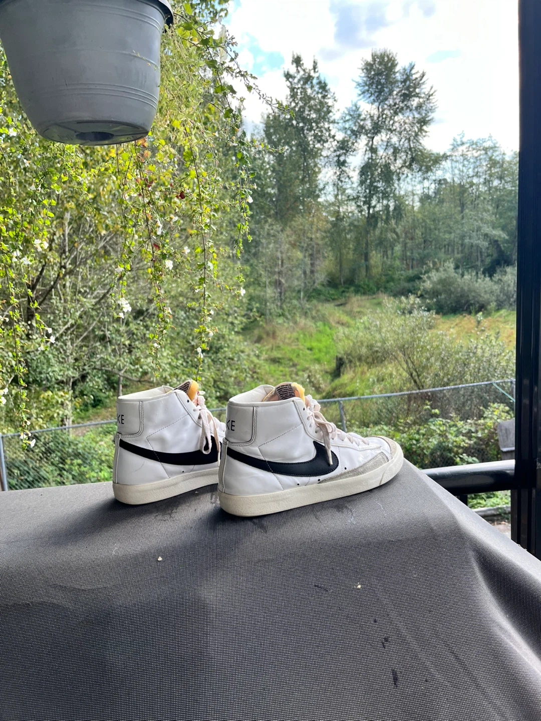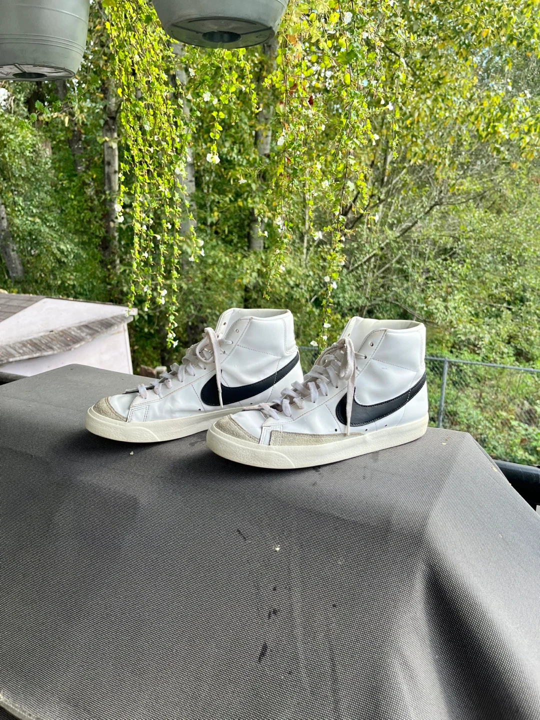 Selling a pair of Nike Blazer Mid '77 Vintage shoes in a classic white and black colourway! These shoes are in great condition and ready for a new home. They're a stylish and versatile choice for everyday wear, adding a touch of retro flair to any outfit. Don't miss out on this timeless classic!