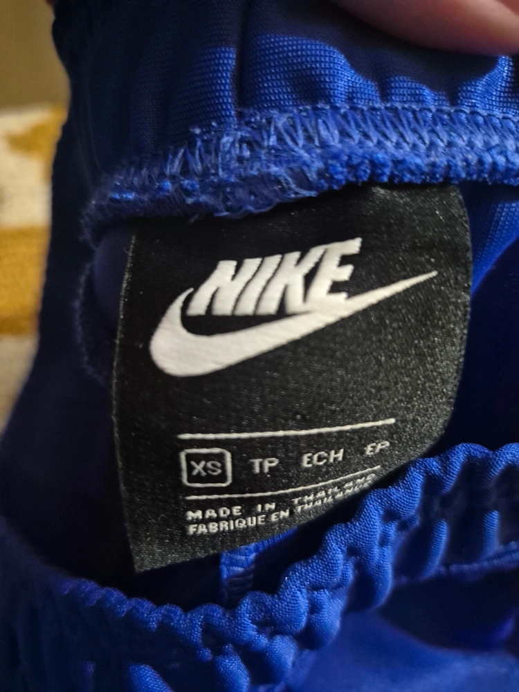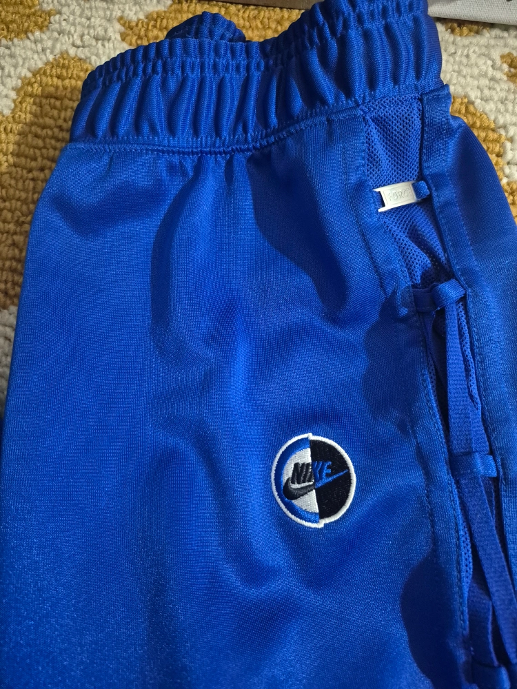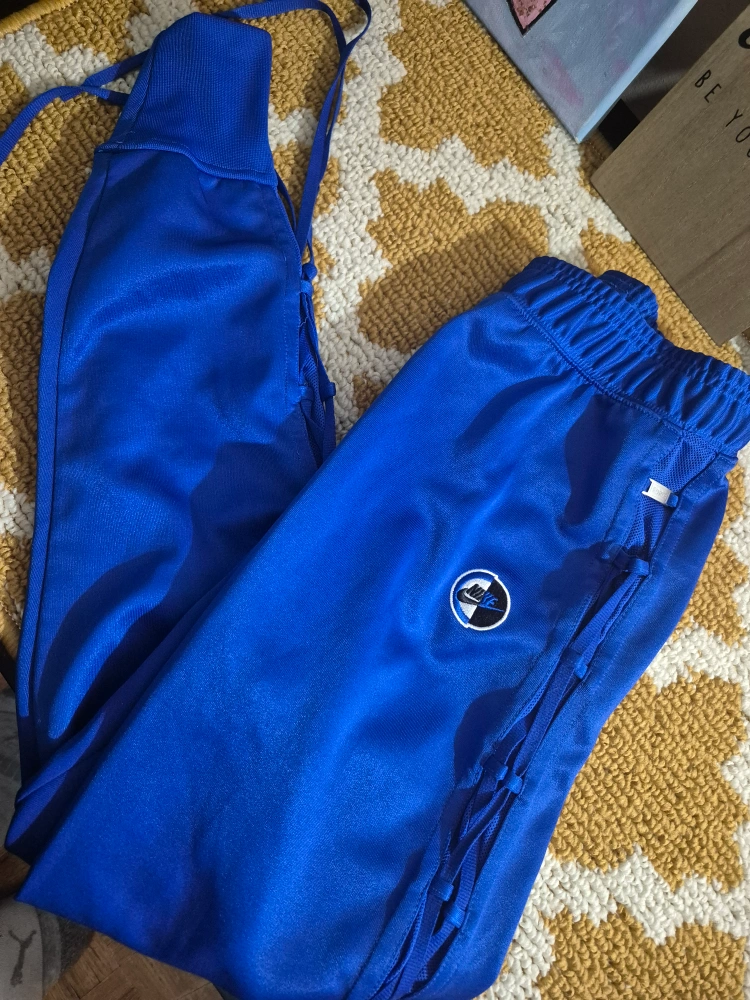 Beautiful athletic pants in a bright blue colour. With laces along the side and a small Nike logo on the front, these are sure to be a stylish addition to your wardrobe for a relaxing day out.