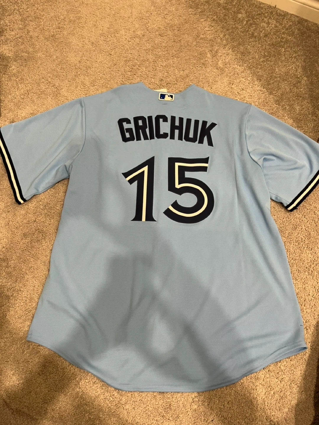 60Selling a Nike Blue Jays baseball jersey with Grichuk and the number 15 on the back. It's a size XL and in great condition. The suggested retail detail price on the tag is CAD $175