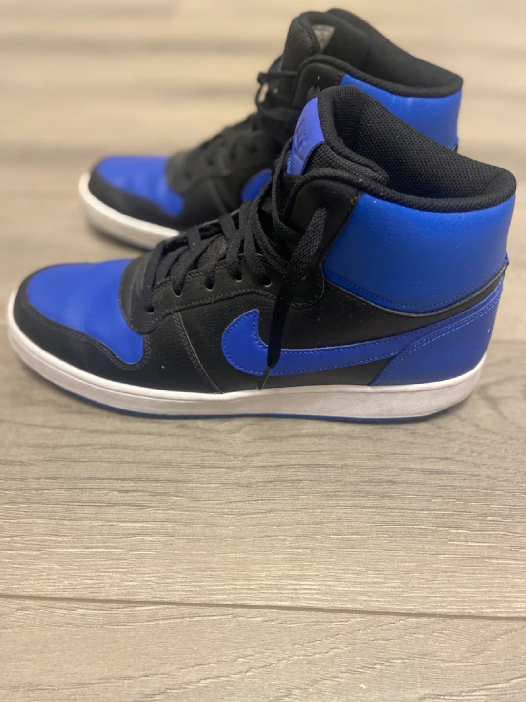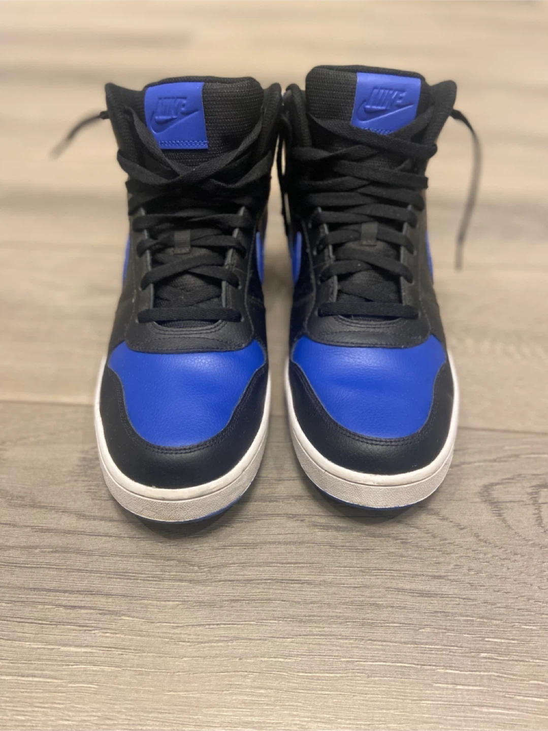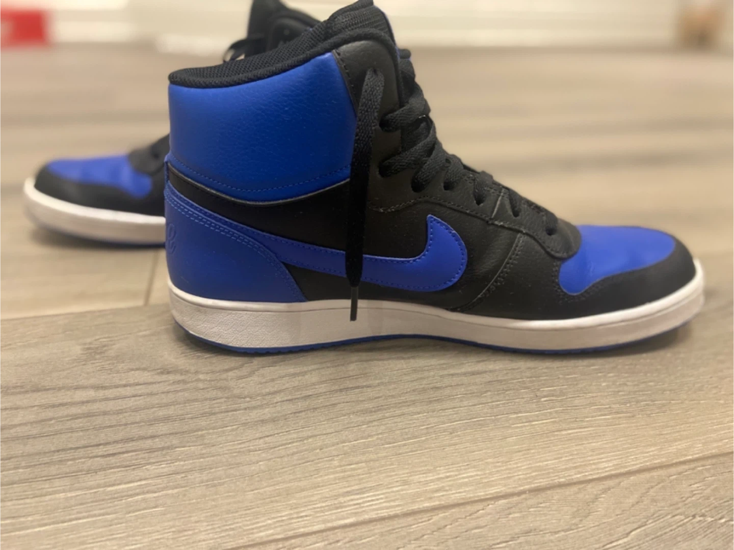 0Selling a pair of Nike Court Vision High shoes in black and blue! They are in great condition and come with the original box.