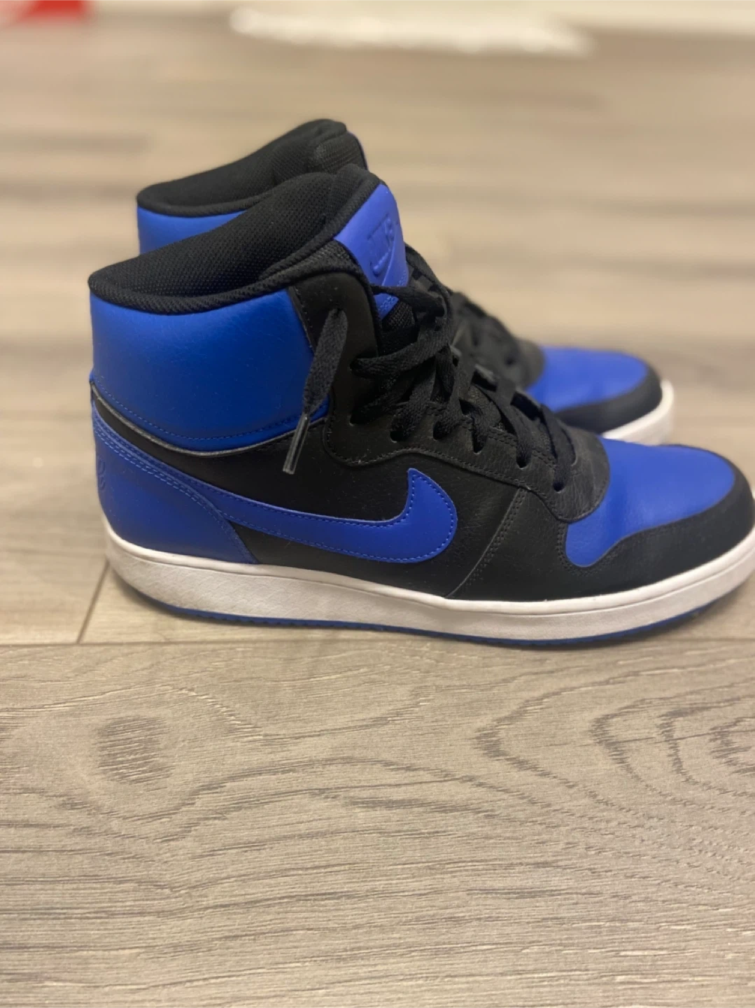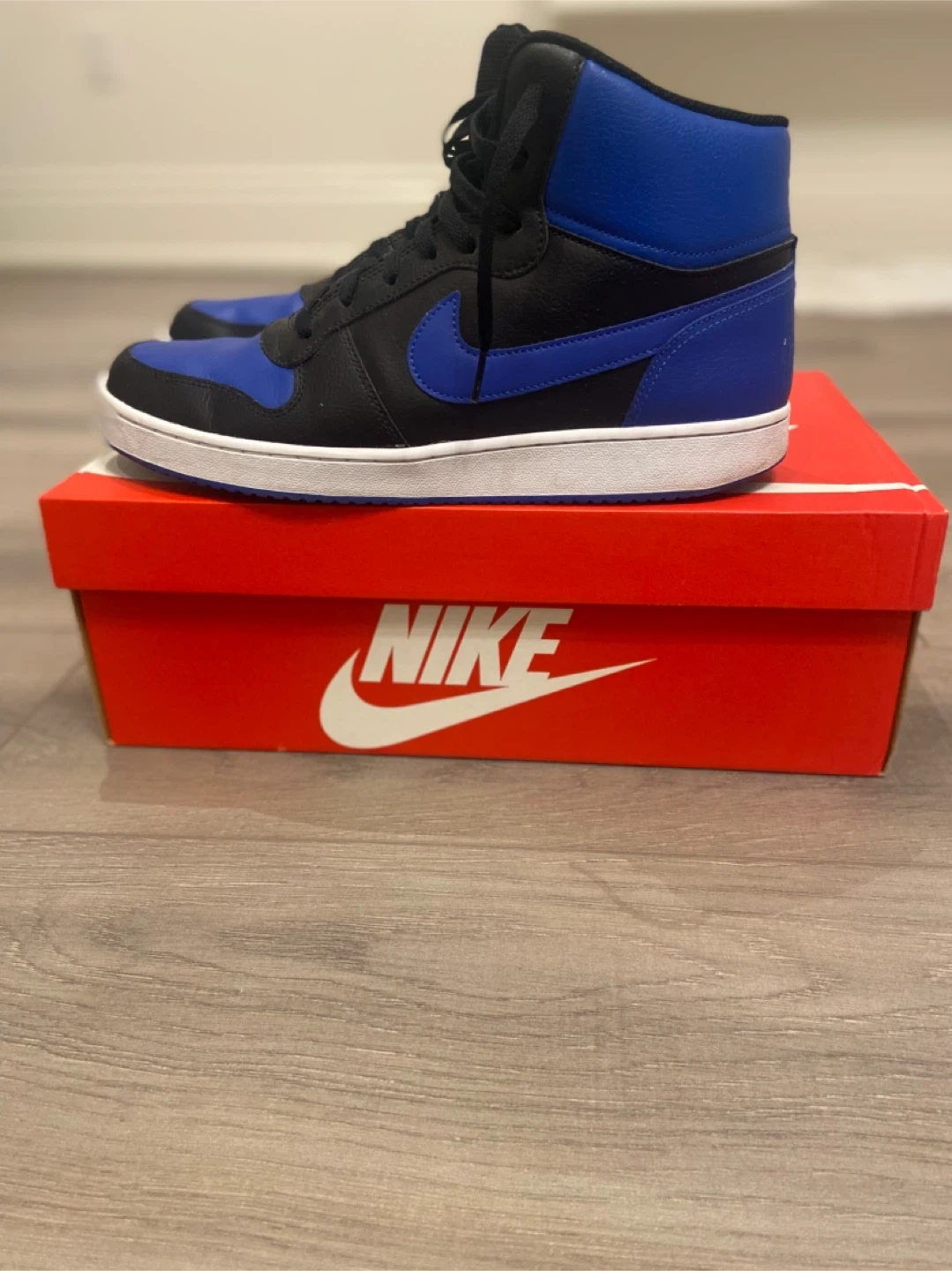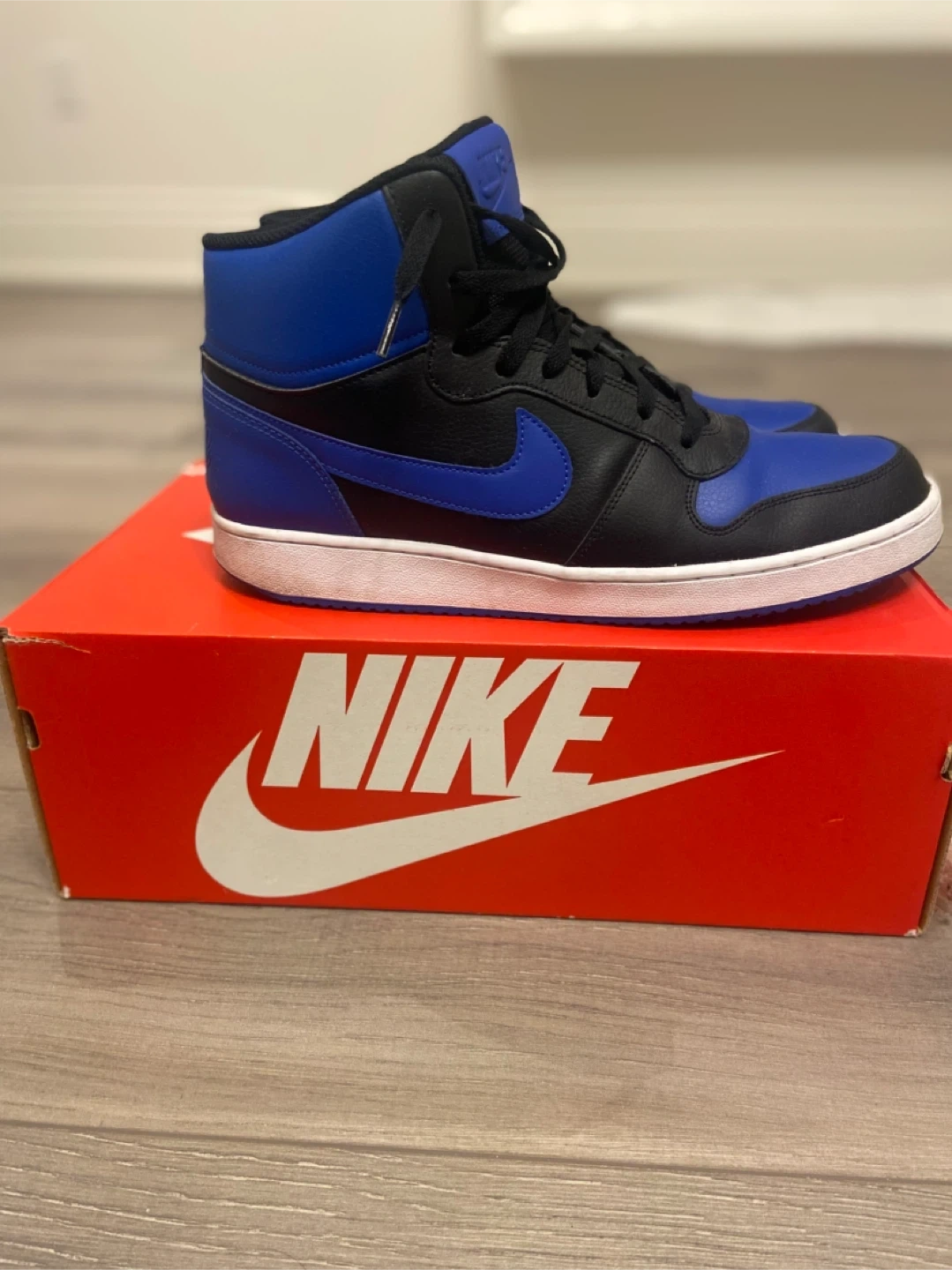 0Selling a pair of Nike Court Vision High shoes in black and blue! They are in great condition and come with the original box.