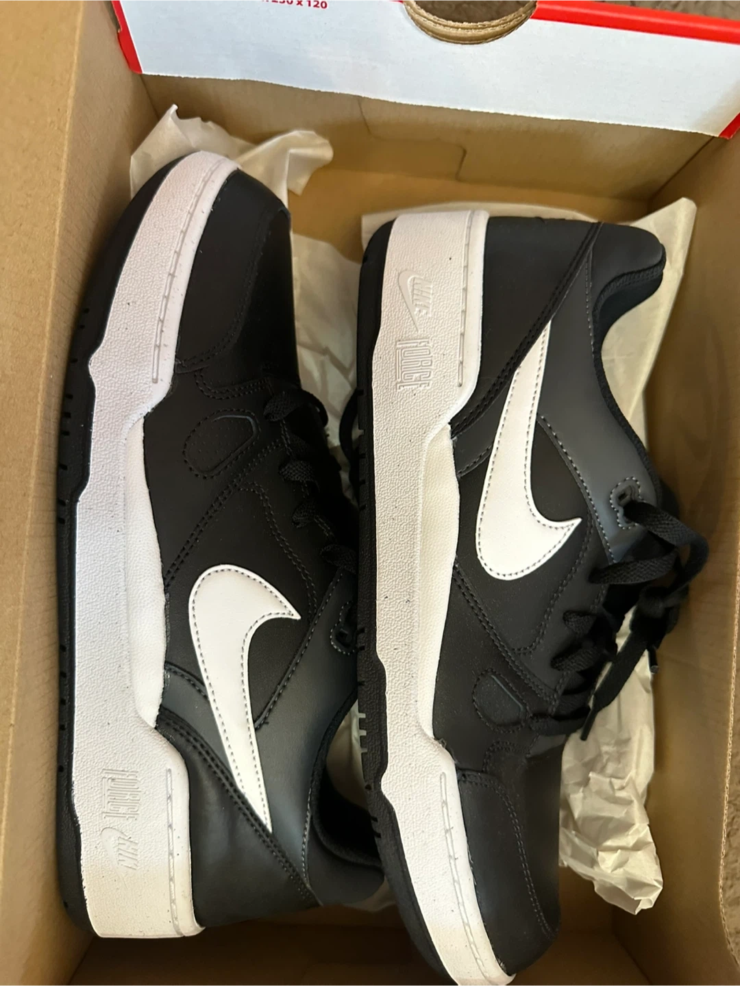 These are a pair of Nike Court Vision Low Next Nature shoes in black and white. They come in the original box. Perfect for everyday wear!