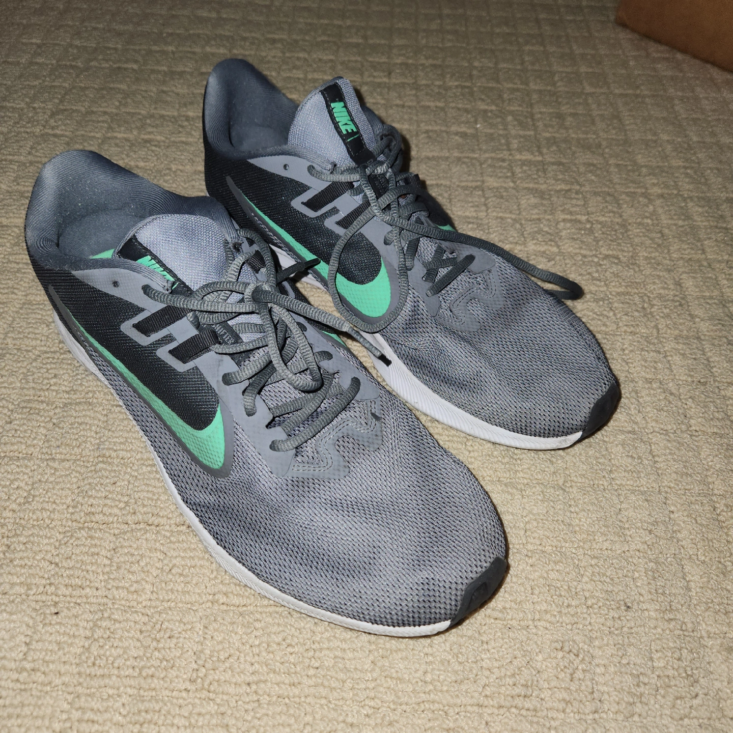 62Selling a pair of Nike Downshifter 9 running shoes in a grey and green colourway. These are a size US 14. They're in good condition and ready for a new home!