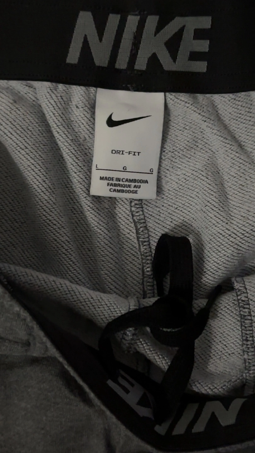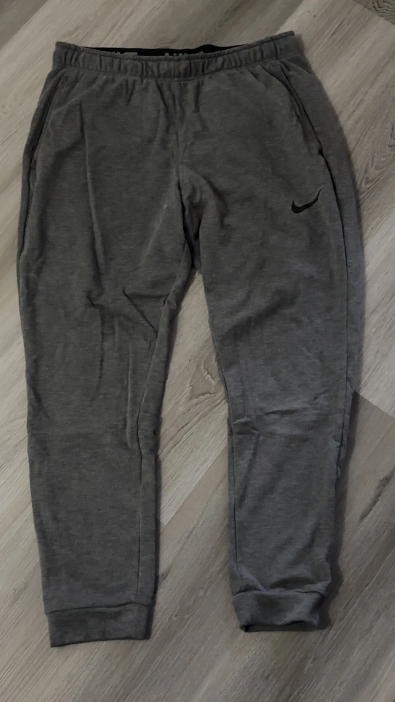 Selling a pair of Nike Dri-FIT sweatpants in grey. They are a size large and in great condition! Perfect for workouts or just lounging around.