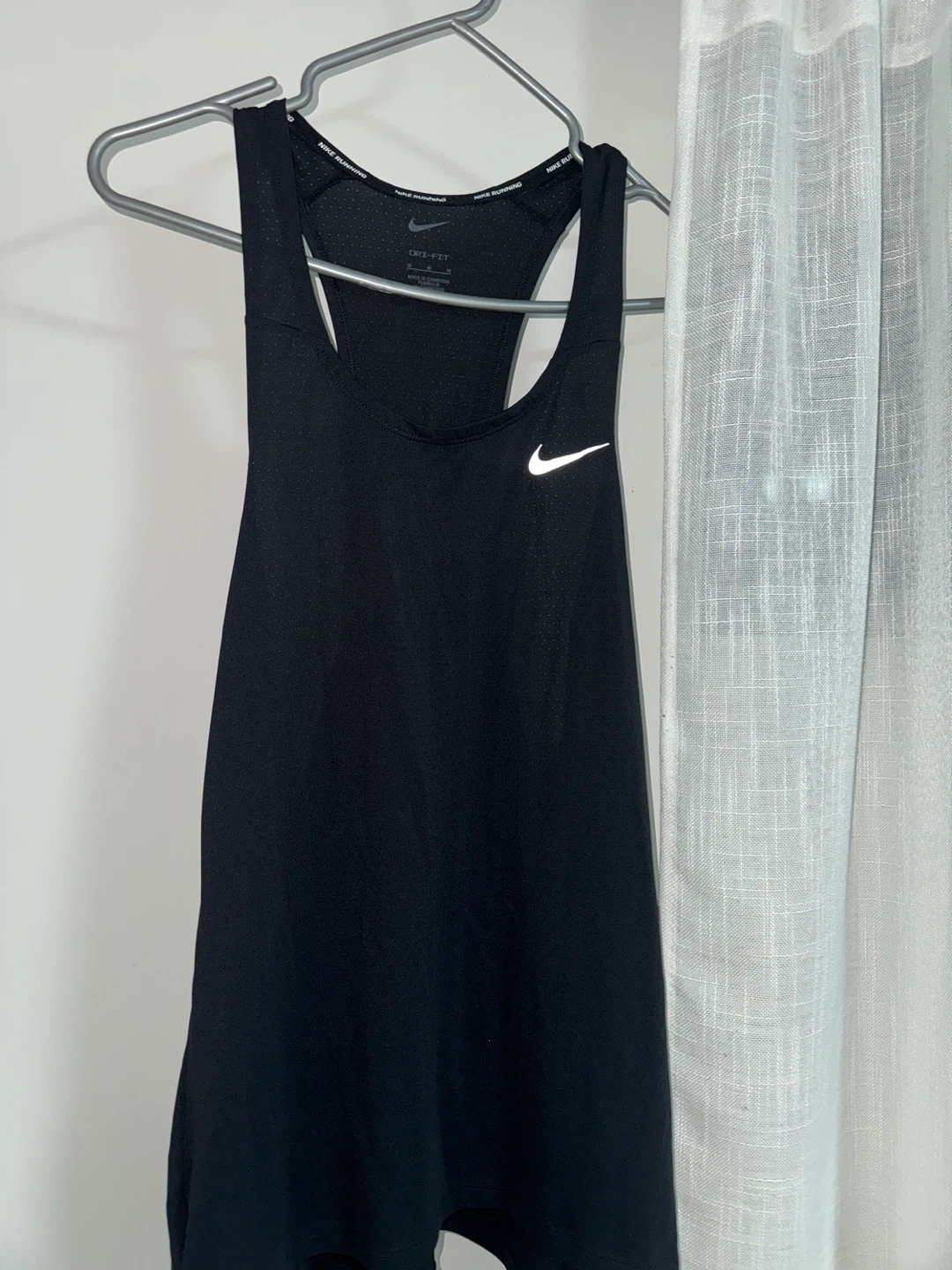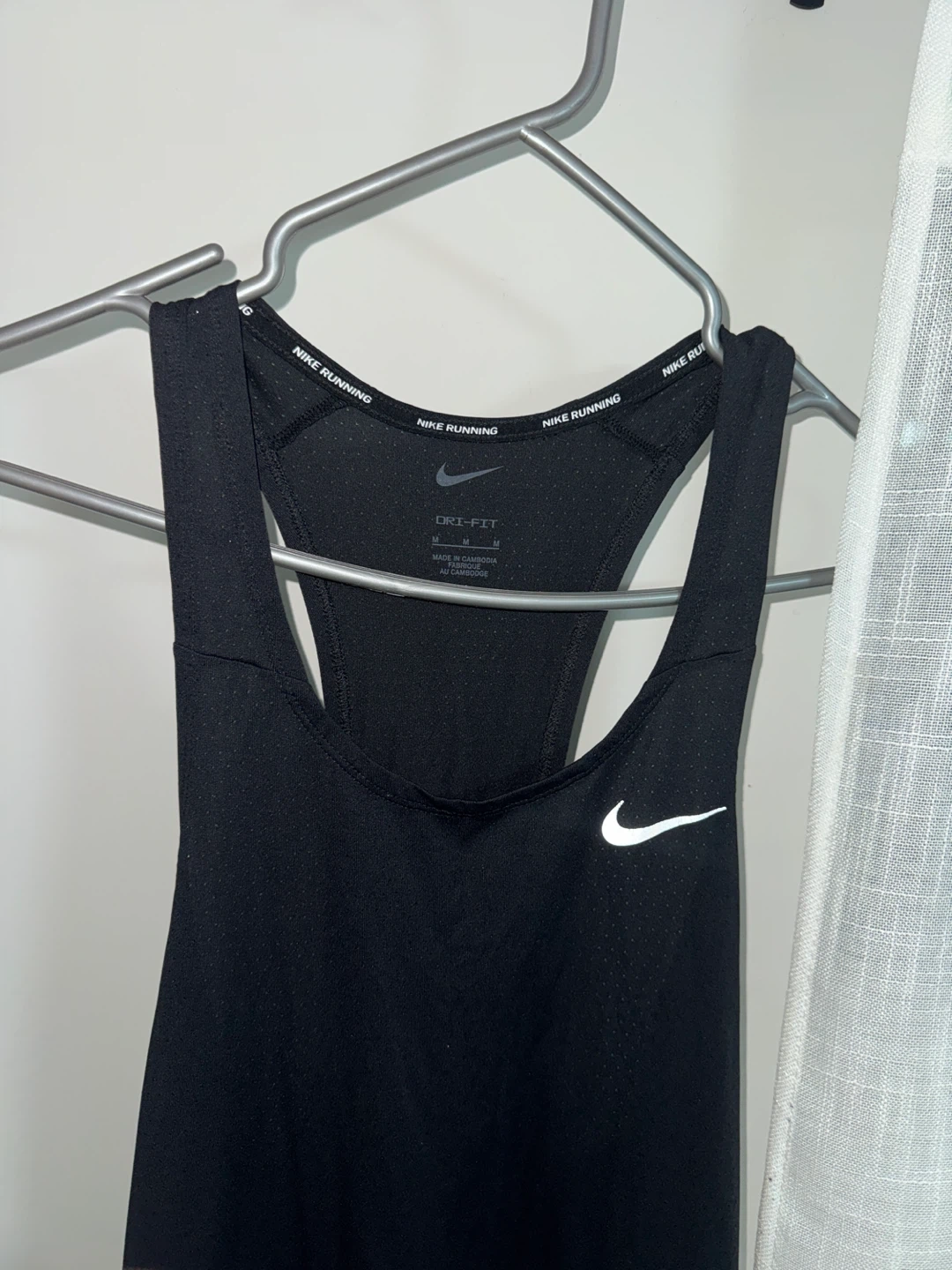 Selling a Nike Dri-FIT running tank top in size medium! It's a sleek black colour and perfect for workouts or everyday wear. The Dri-FIT material is great for keeping you cool and comfortable. It's in great condition and ready for a new home!