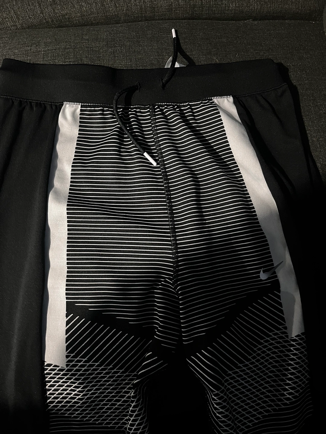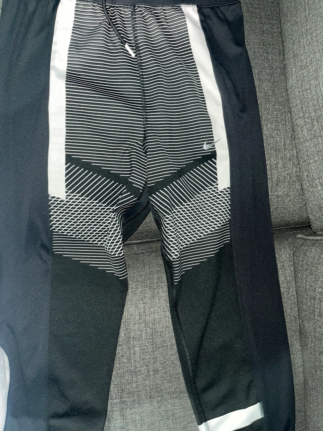 Black and white Nike Dri-FIT running tights or jogging don’t really know. white striping and a Nike logo. Very comfortable light weight and great for numerous occasions Pick up only need gone asap
