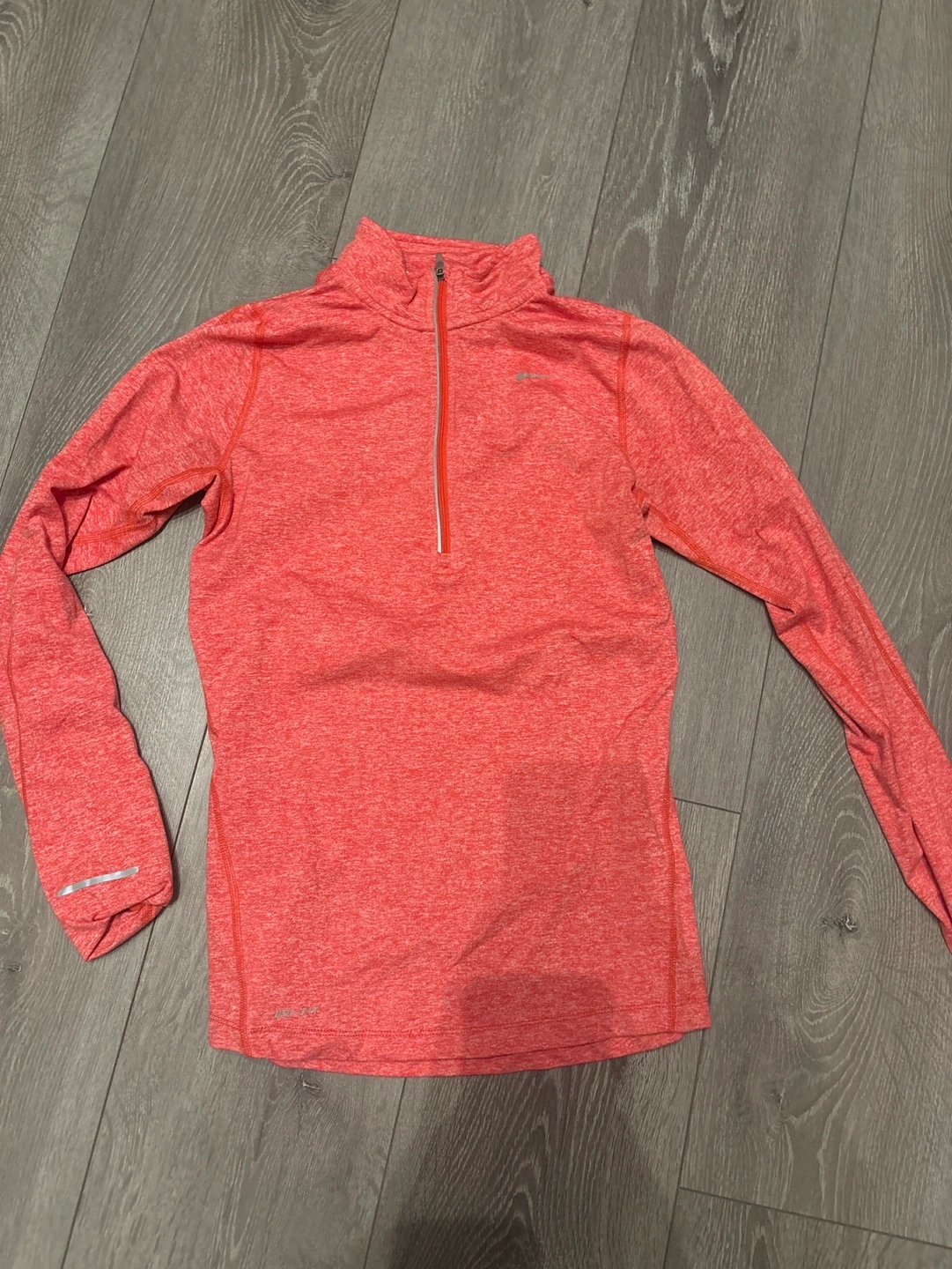 Long-sleeved running top with a 1/4 zip. Pink and orange colour. Size XS.