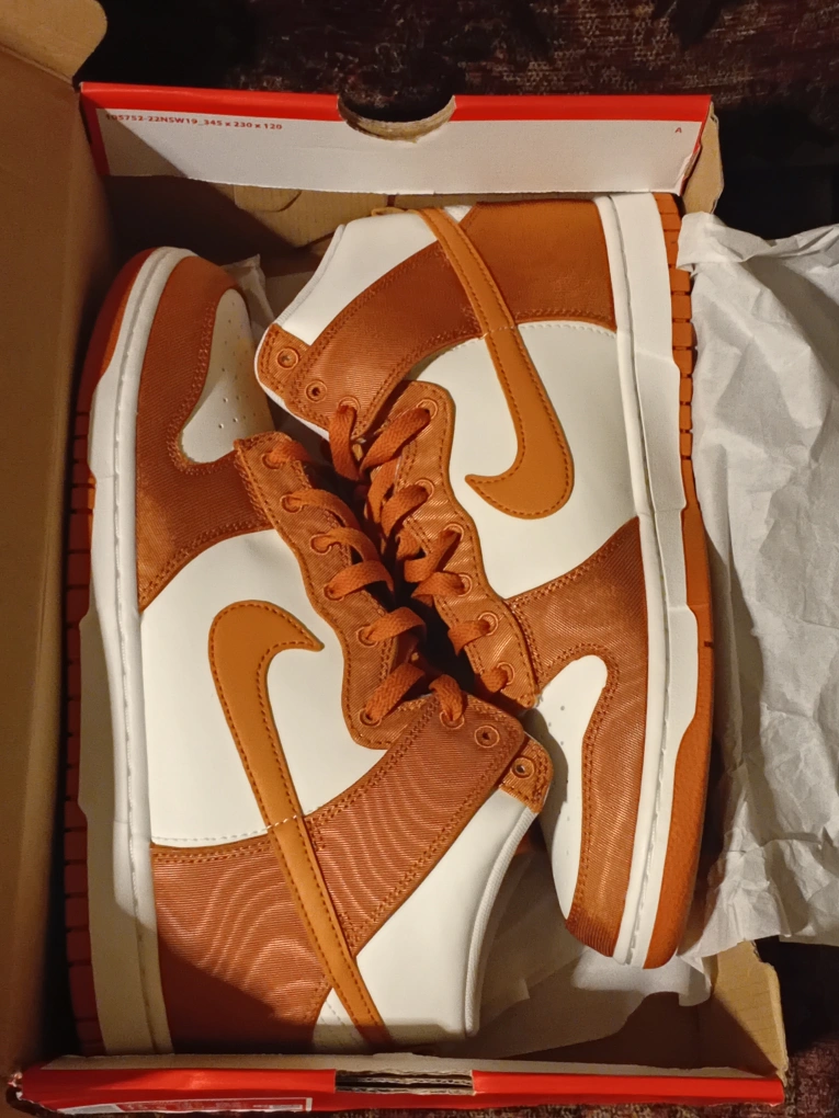 15Selling a pair of Nike Dunk Hi Retro SE sneakers in orange and white. They are a size 11 US and come with the original box. These dunks are in great condition and ready for a new home!