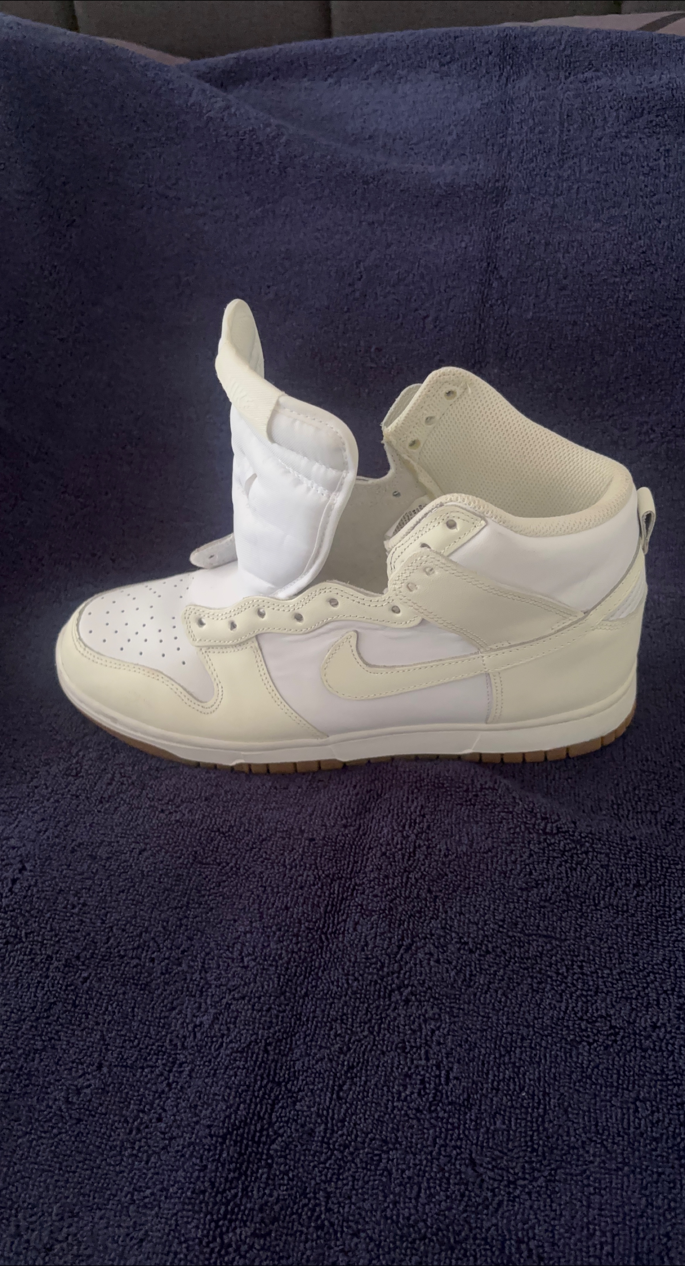 Selling a pair of Nike Dunk High Vintage Light Bone sneakers. These are in great condition and have a classic look! No shoe laces.