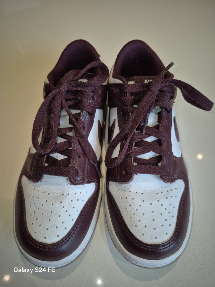 12Selling a pair of Nike Dunk Lows in the Bordeaux and White colourway. They are youth size 5.5Y. These are in great condition! no scratches!!! very great condition