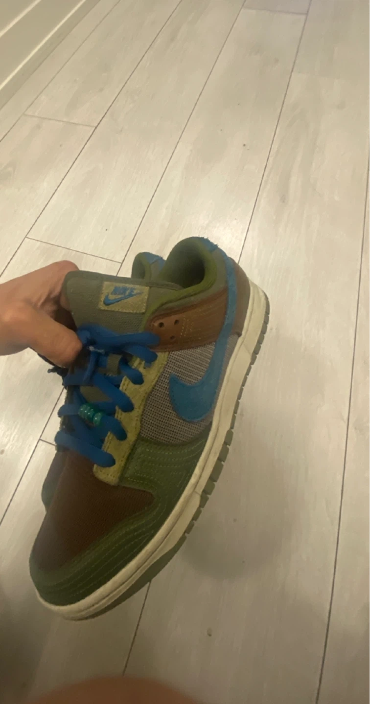 Nike Dunk Low in a hemp and blue colourway. These are in used condition, please see photos for details