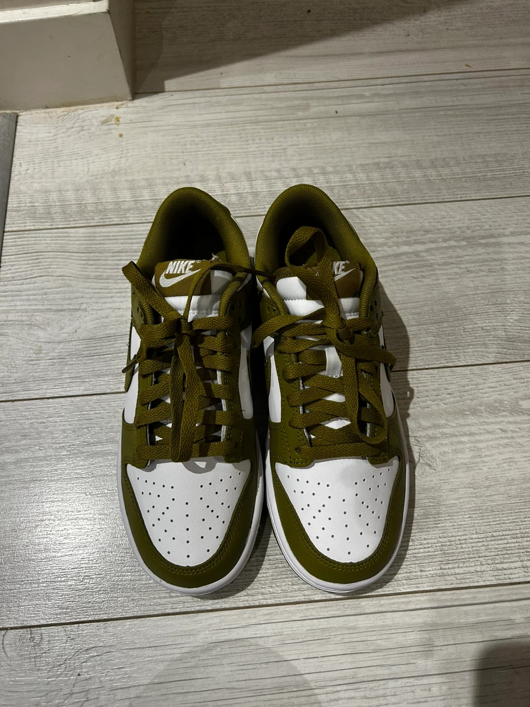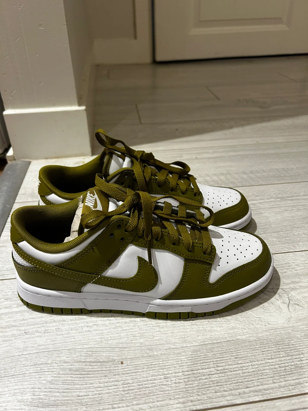 These Nike Dunk Lows are in great shape and ready for a new home! The colourway is a stylish olive green and white. They're a classic, comfortable shoe that goes with just about anything. No original box. RFS: wrong size