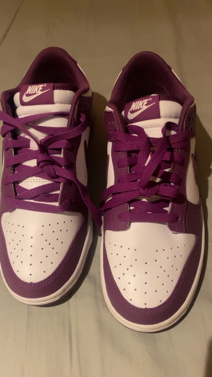 Selling a pair of Nike Dunk Low shoes in a stylish purple and white colourway. These shoes are in great condition and ready for a new home! Perfect for adding a pop of colour to your outfit.