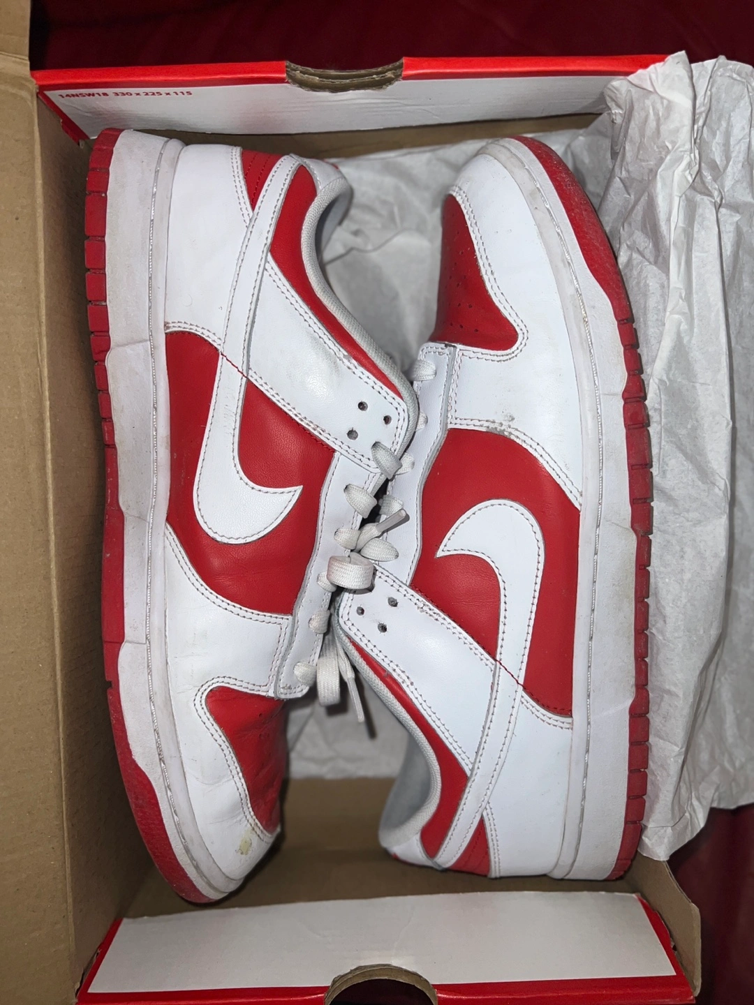 5Low-top sneakers. Red and white colourway. Classic design. Pre-owned.