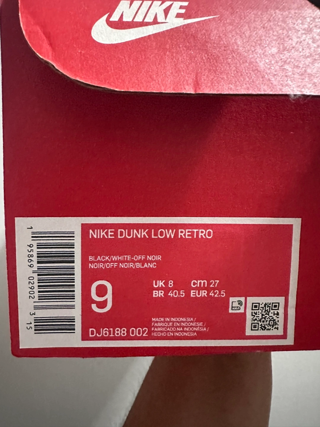 Selling a pair of Nike Dunk Low Retro sneakers in the classic black and white colourway! These are a size 9 and come with the original box. They're in great condition and ready for a new home!