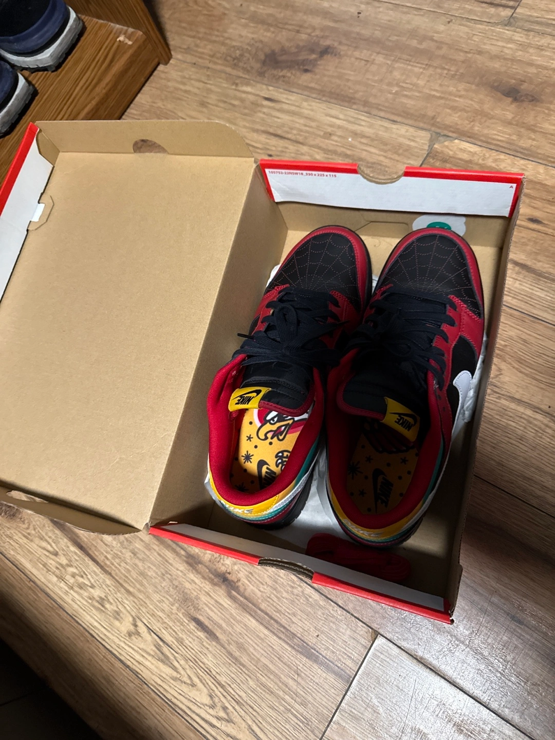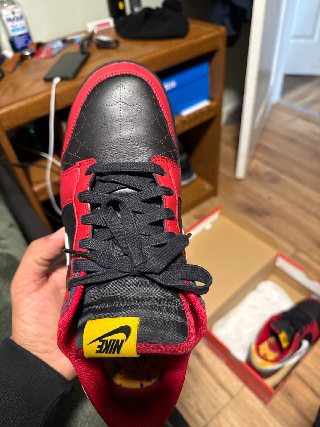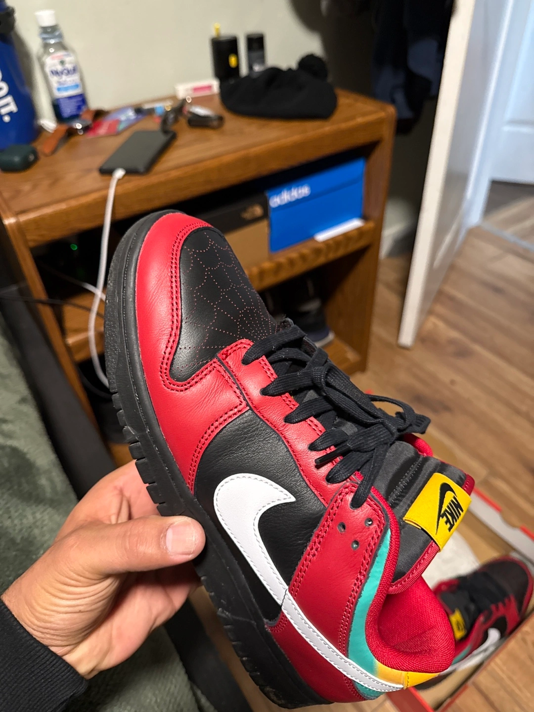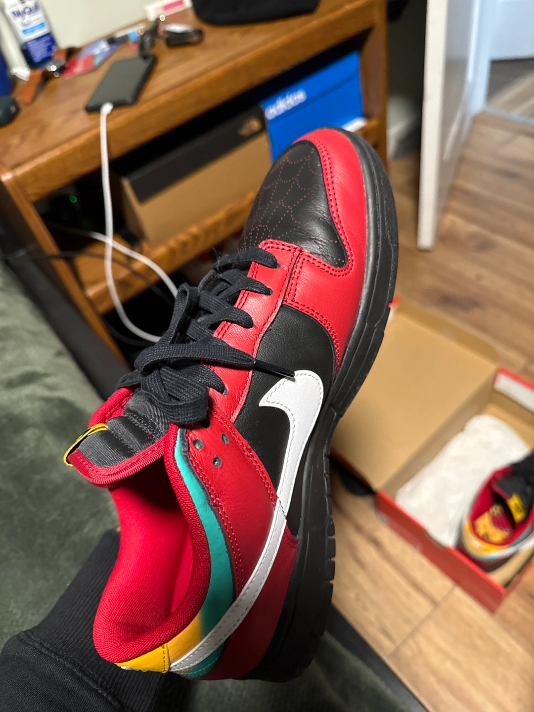 Men's Nike Dunk Low Retro LTD sneakers. Size 10.5. Red, black, and teal colourway. Comes with original box.
