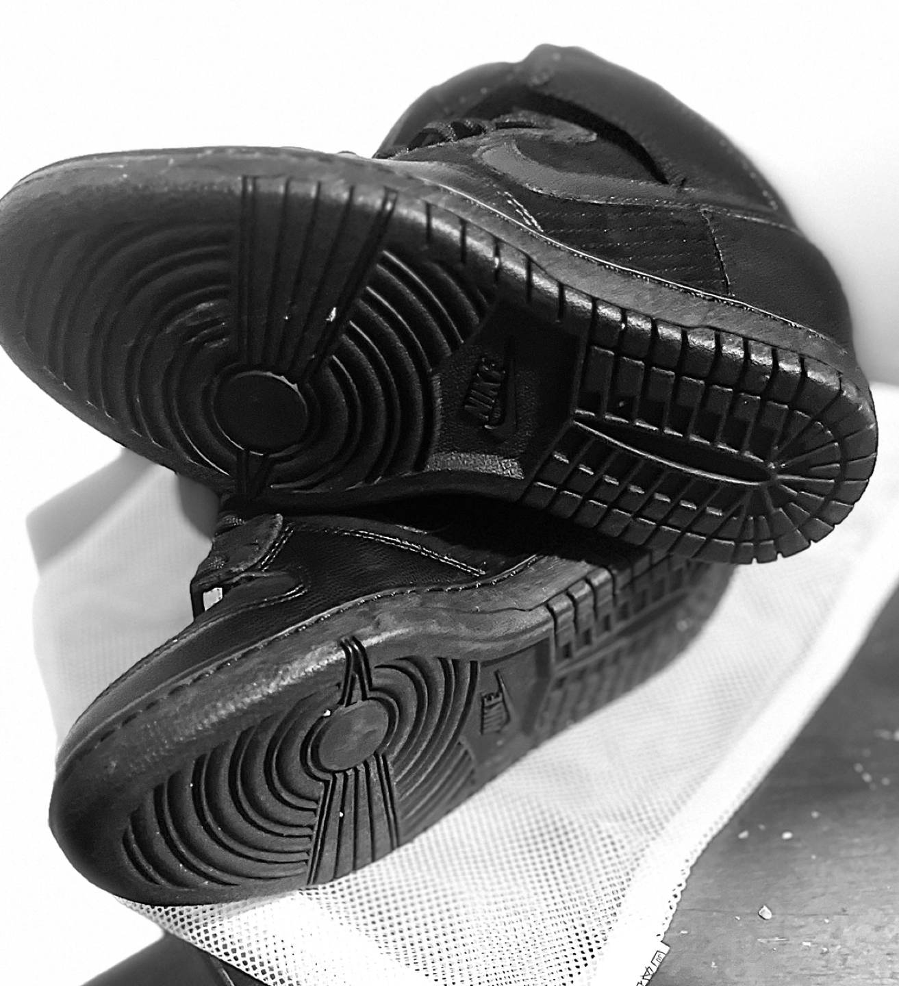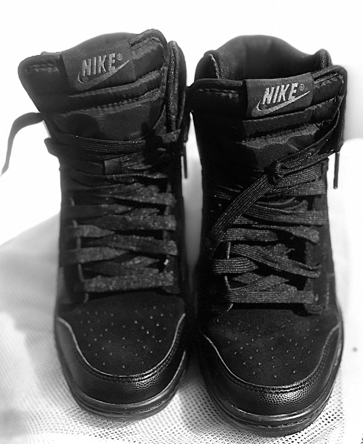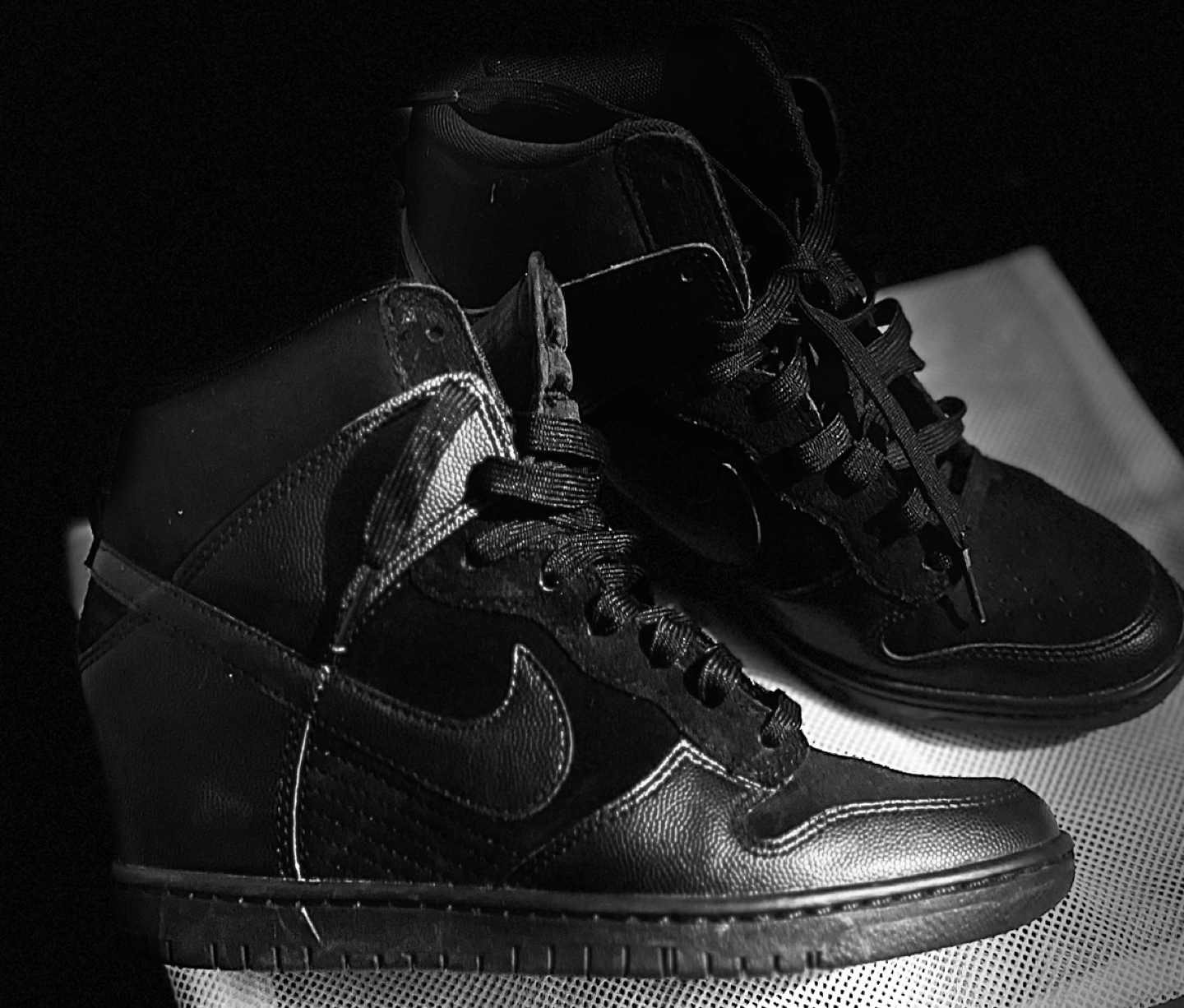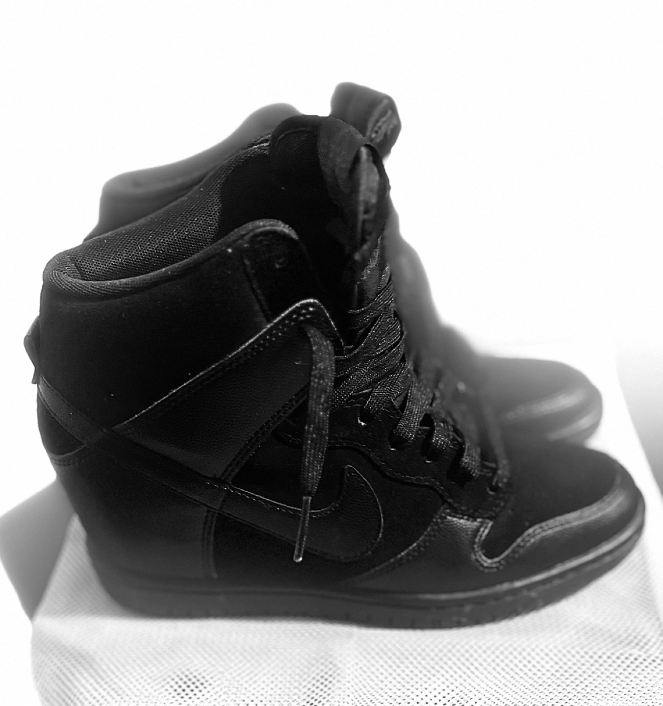 Black leather sneakers with a wedge heel. Lace-up closure. Good condition. Size 7.5