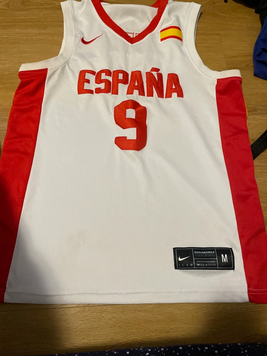 Selling a Nike España #9 jersey in size medium. The jersey is white with red accents and features the Spanish flag. It's in great condition and ready for a new home!