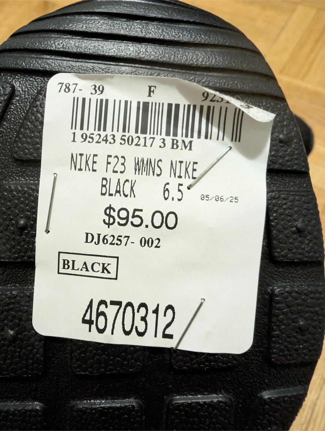 Selling a pair of Nike F23 WMNS shoes in black, size 6.5. They're in great condition and ready for a new home! The original price was $95+tax .