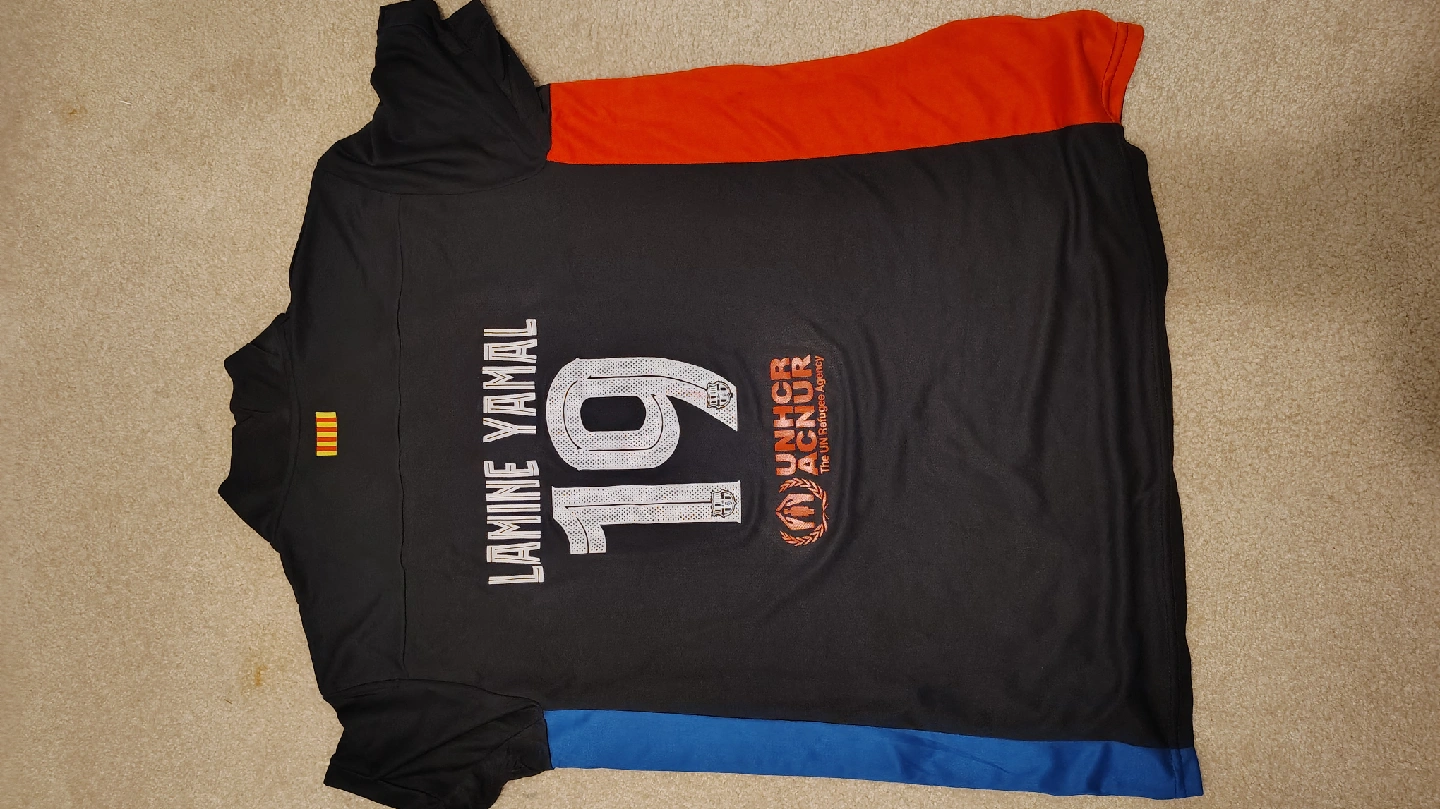 10Selling a Nike FC Barcelona soccer jersey from the 2023/24 season, featuring Lamine Yamal's name and number 19. It's a size M and in great condition. The jersey has the Spotify logo on the front and the UNHCR logo on the back. Perfect for any Barça fan!