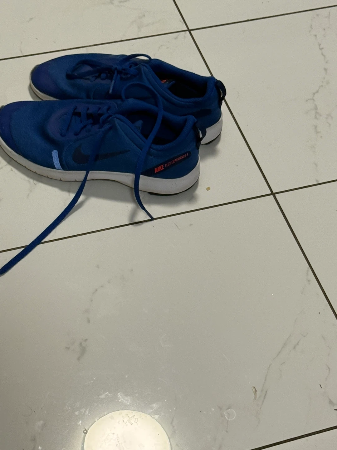Selling a pair of Nike Flex Experience RN 9 running shoes in blue. They're in good condition and ready for a new home. Perfect for running or everyday wear!
