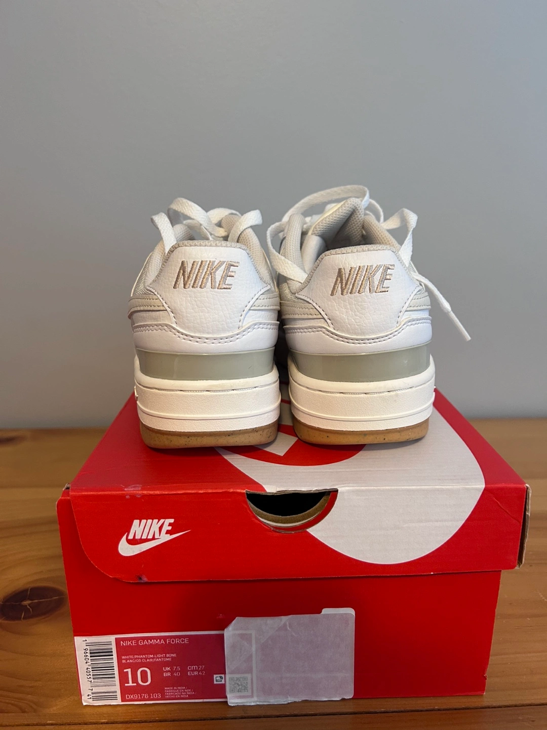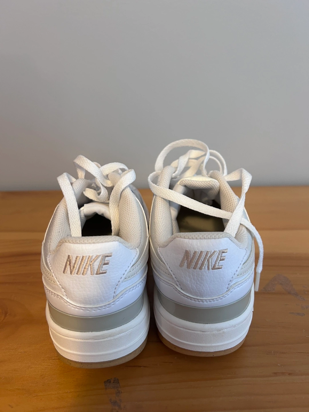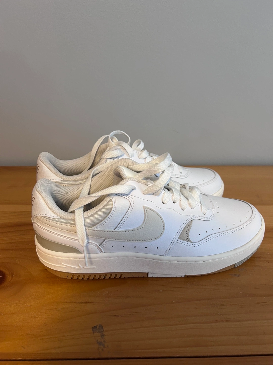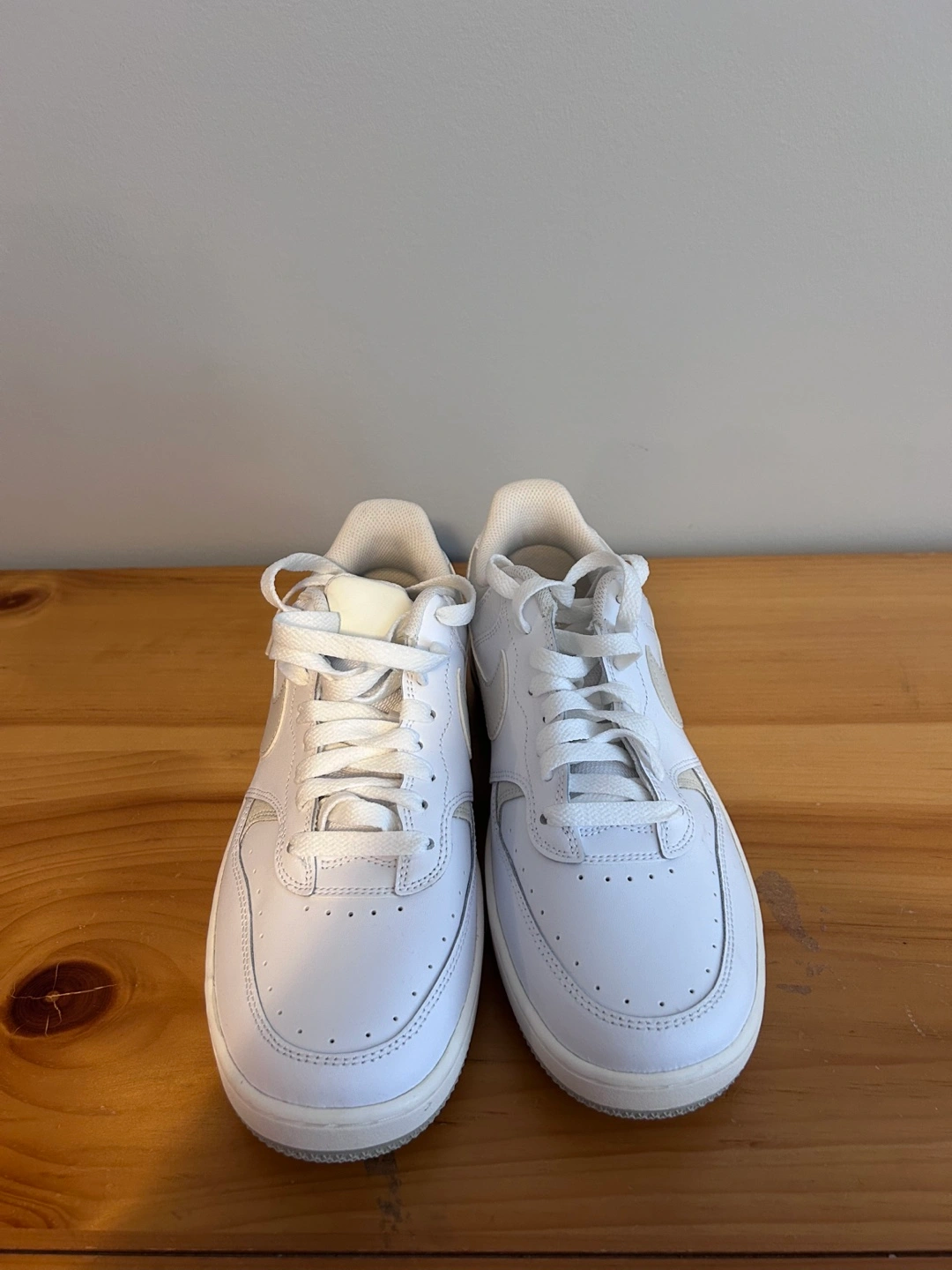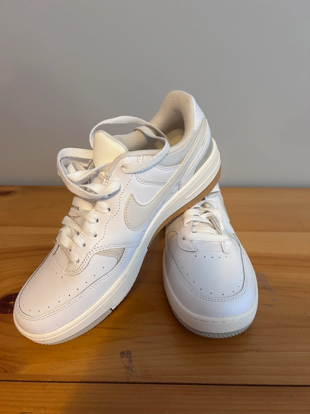 White leather sneakers. Low-top design. Cream accents. Comes with original box. Size 10. Never worn