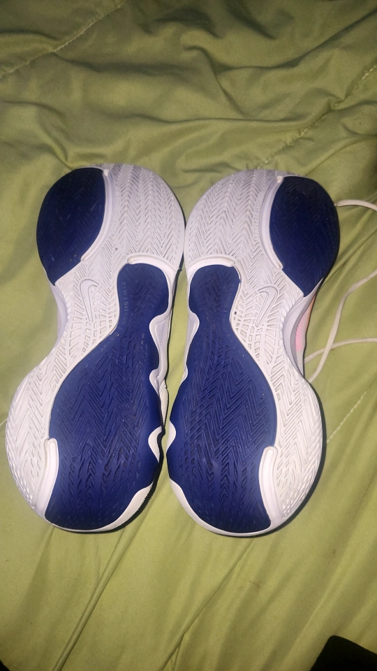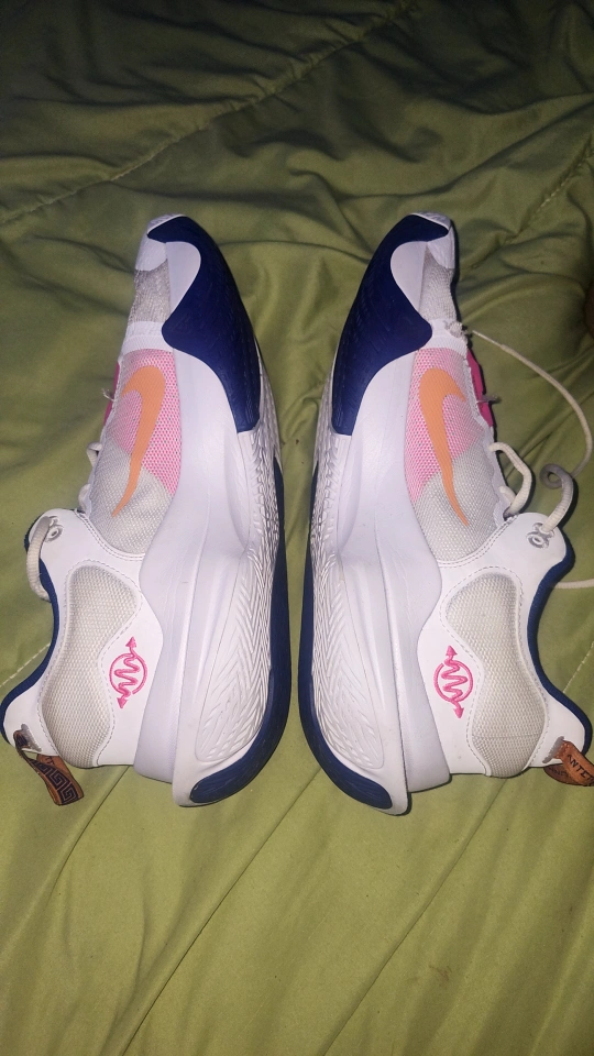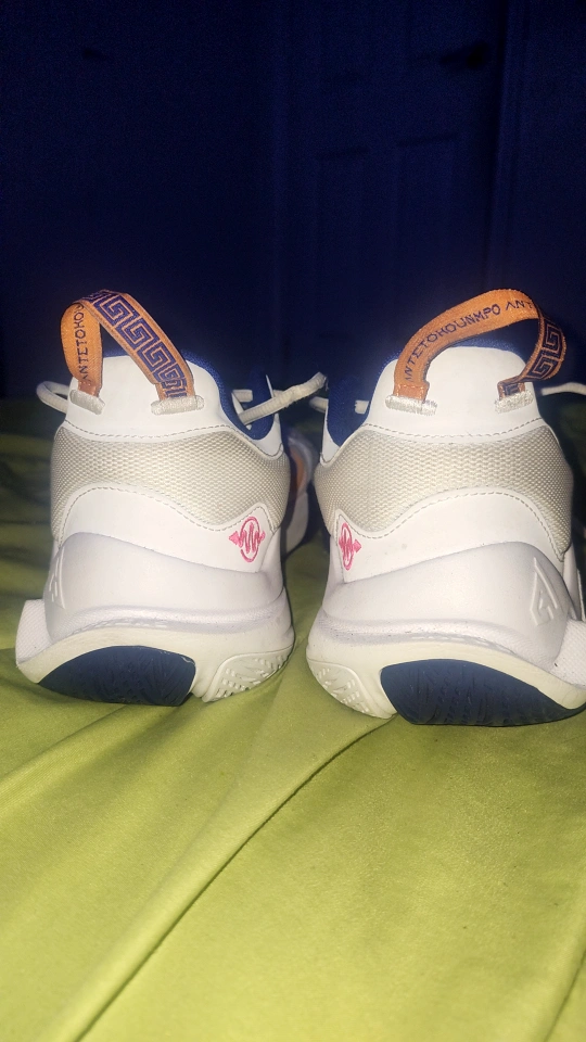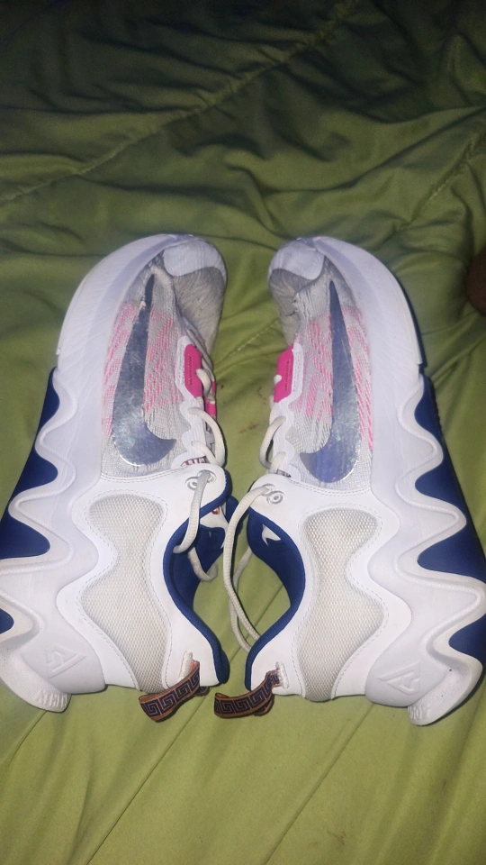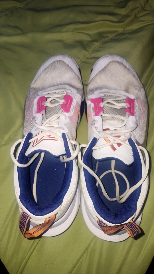 10Selling a pair of Nike Giannis Immortality 2 basketball shoes. They're white with blue and pink accents. Great for playing ball or just kicking around town! good condition