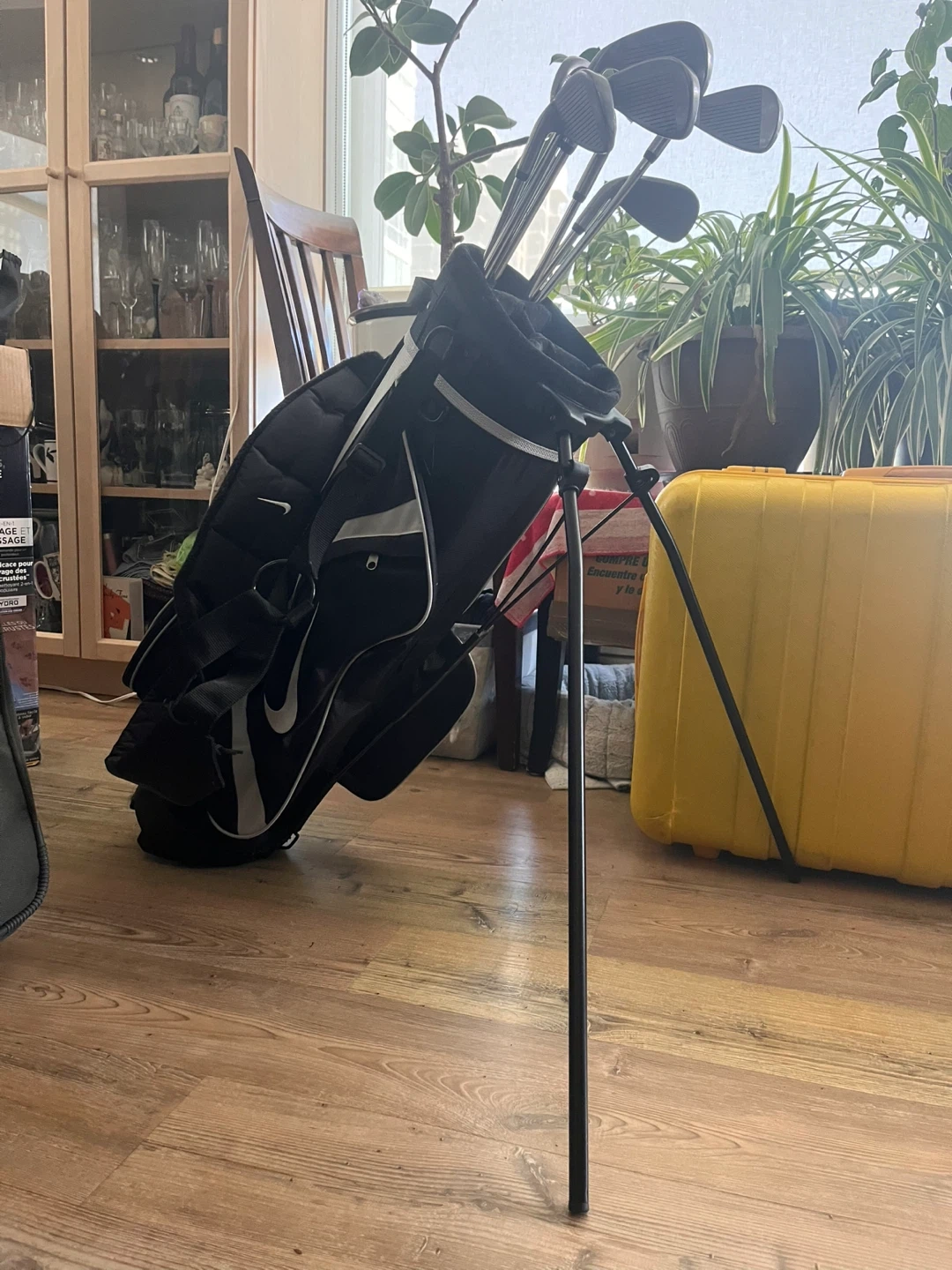 76Selling a Nike golf bag that's in great shape! It comes with a set of clubs (two more out from picture) and a bag of Pride Professional Tee System ProLength 2 3/4" (69 mm) tees (un opened) Also comes with plenty of balls so your ready to hit the Tee. Getting rid of today. Call or text (825) 736-7977.