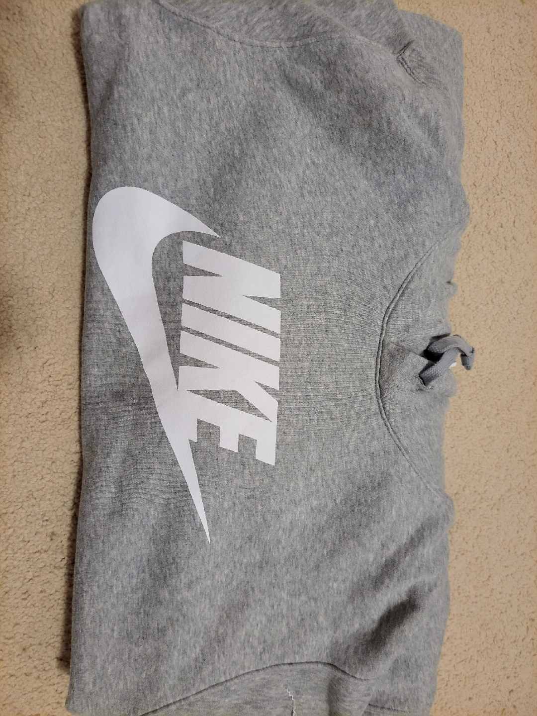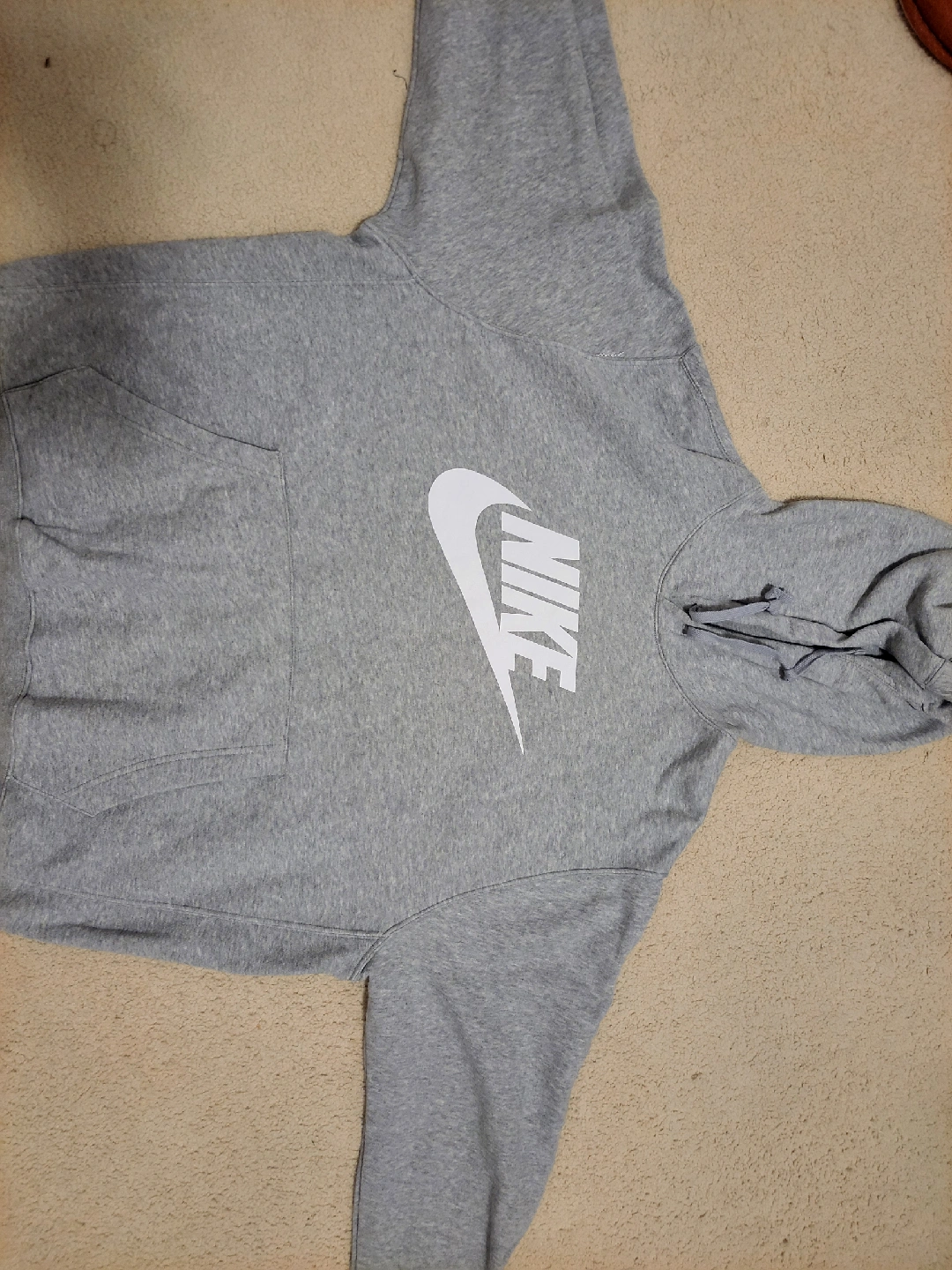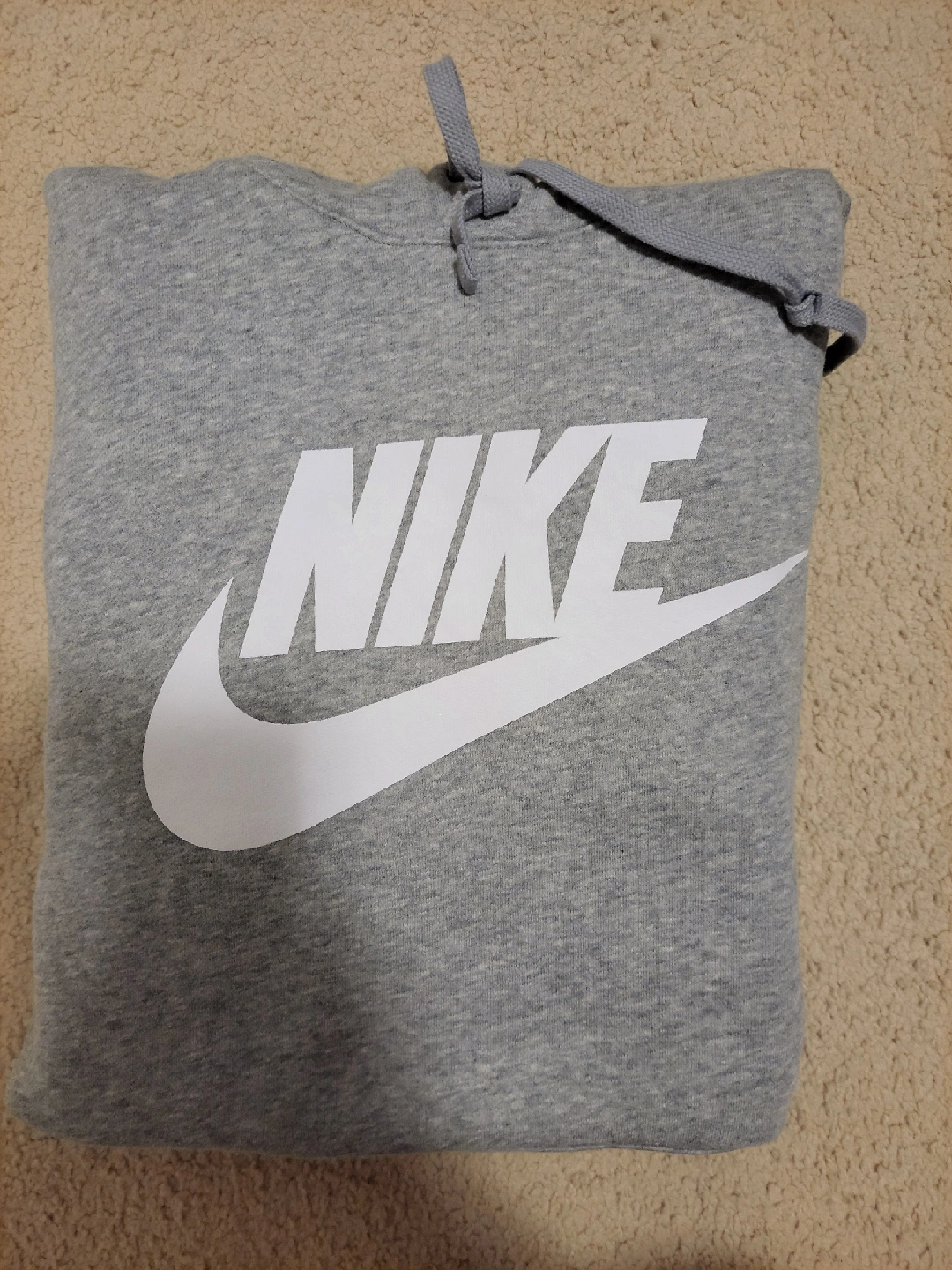 15Selling a grey Nike hoodie in size XL. It's in great condition and perfect for staying cozy! The iconic Nike logo is displayed prominently on the front.