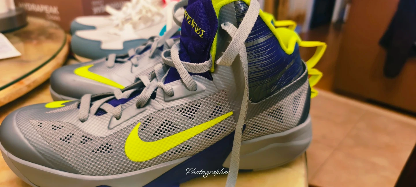 5Selling a pair of Nike Hyperfuse 2014 basketball shoes. They are a size 11.5 US. The shoes feature a silver and neon yellow colour scheme with a purple interior. These shoes are great for playing basketball or just for casual wear! Cash only Pick up.in.markham..highqay 7 and mccowan