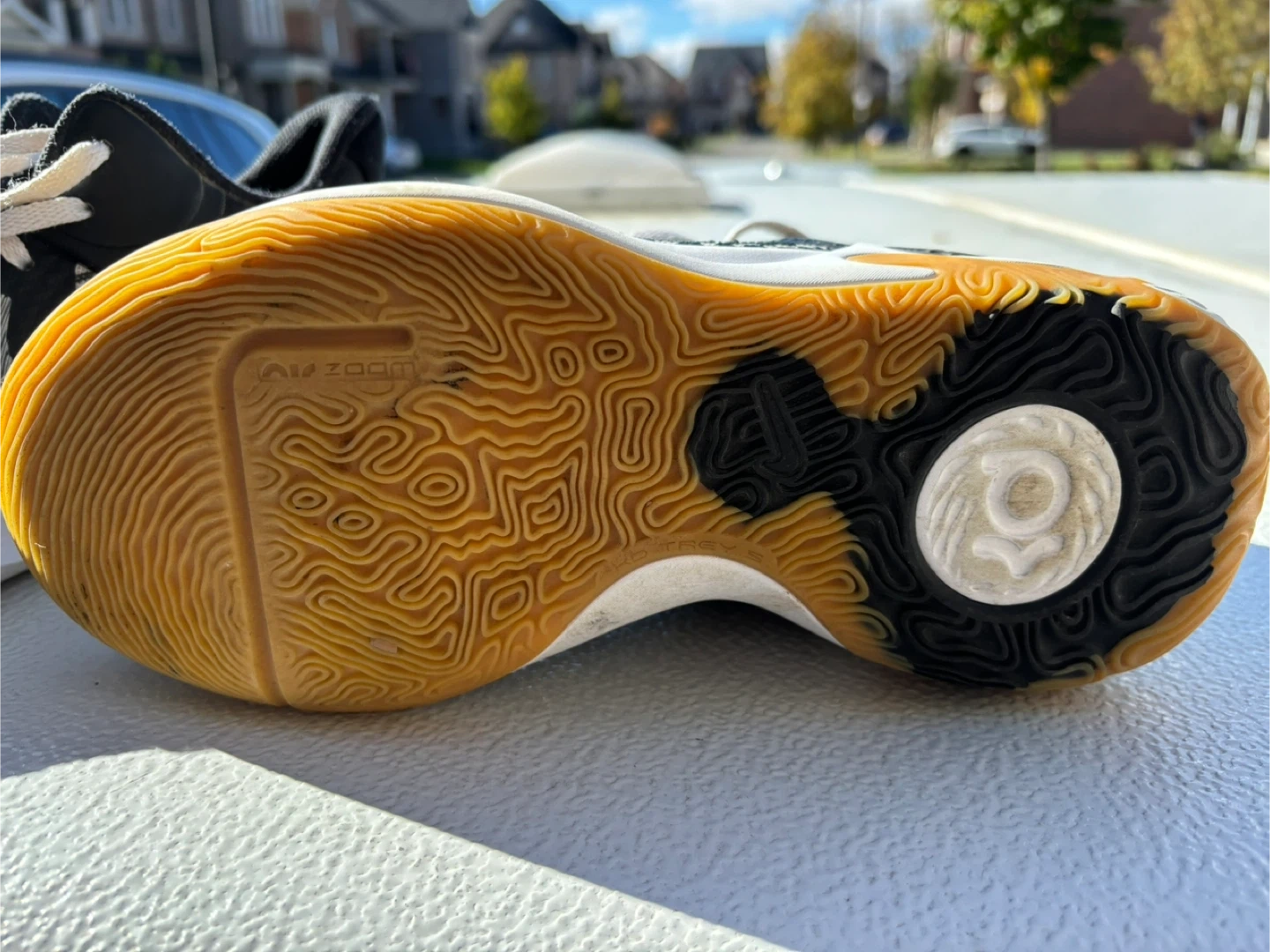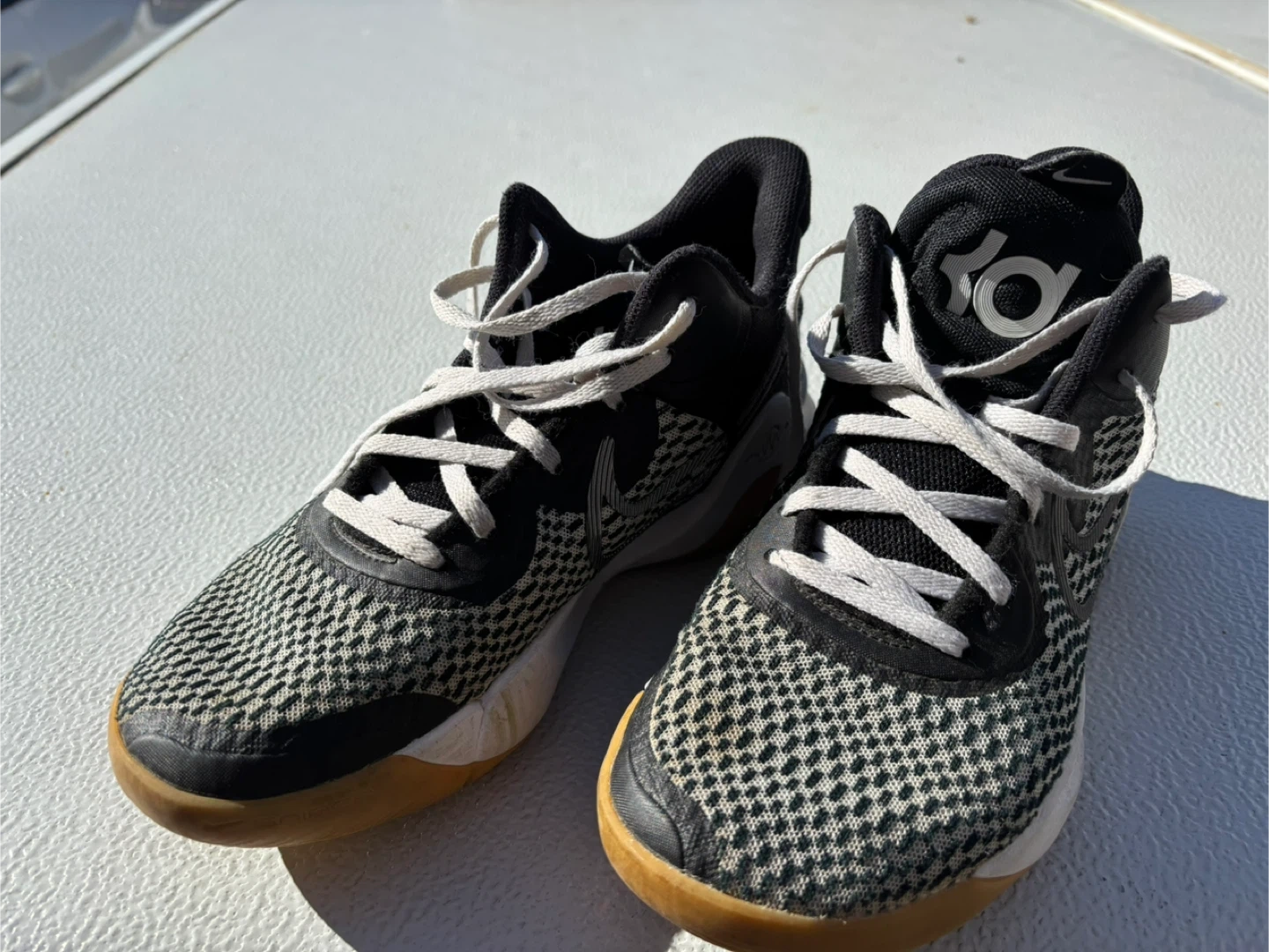 10Selling a pair of Nike KD Trey 5 VIII basketball shoes. They're in good condition and ready for the court or casual wear. The design features a black and white upper with the KD logo. The sole provides good traction and support for playing basketball or everyday activities