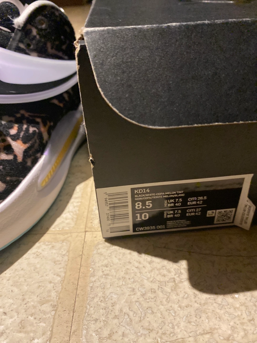 26Selling a pair of Nike KD14 basketball shoes in black, white, and melon tint! They are a US size 8.5 men and come with the original box