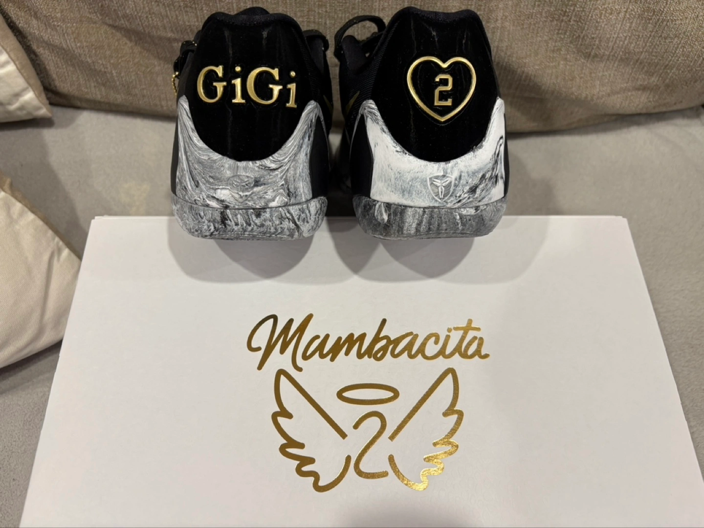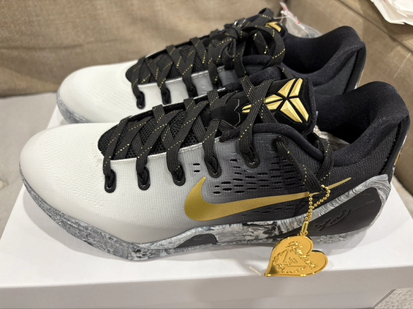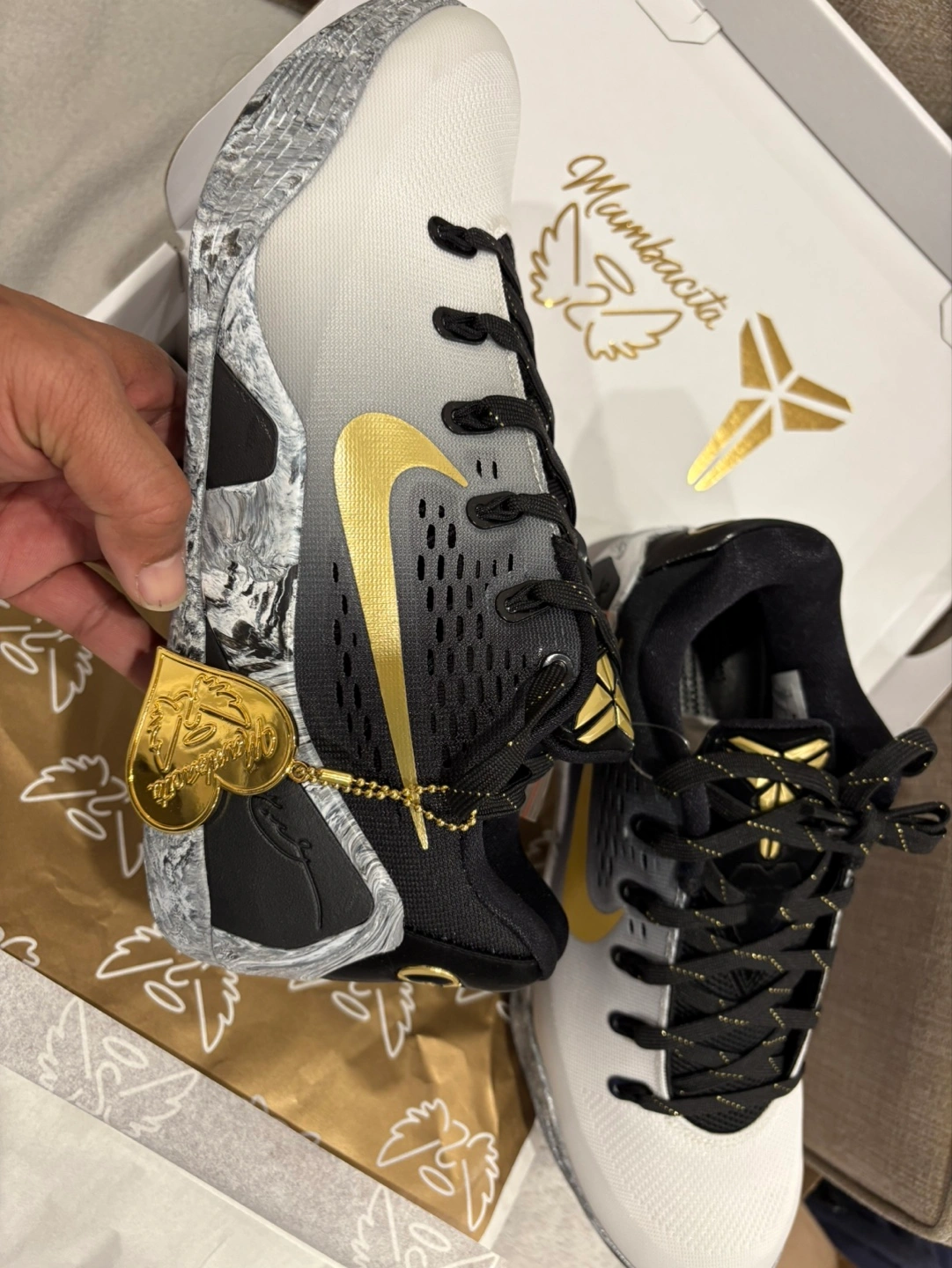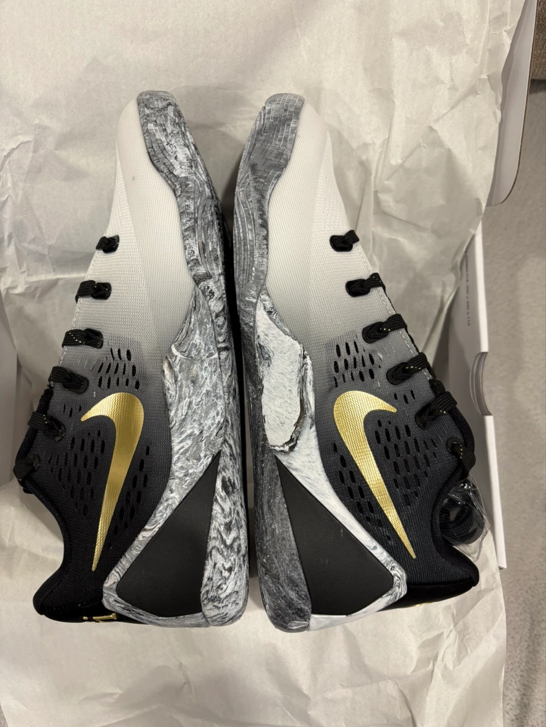 Beautiful sneakers featuring a sleek design with a mix of colors and patterns. The shoes include a gold swoosh on the sides. Details include special text and numbers on the heel. These shoes could be a great addition to your sneaker collection. Pm is key Meet up is scarborough or markham