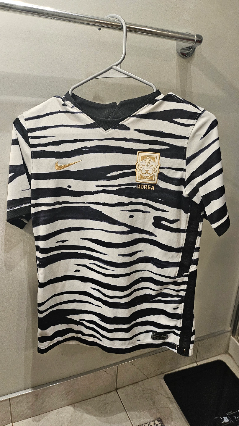 Selling a Nike Korea soccer jersey in size XL. It has a unique tiger stripe design and is in good condition!