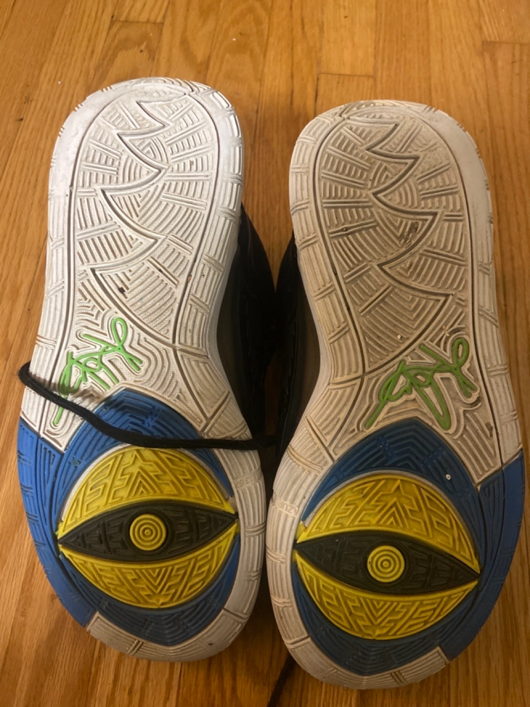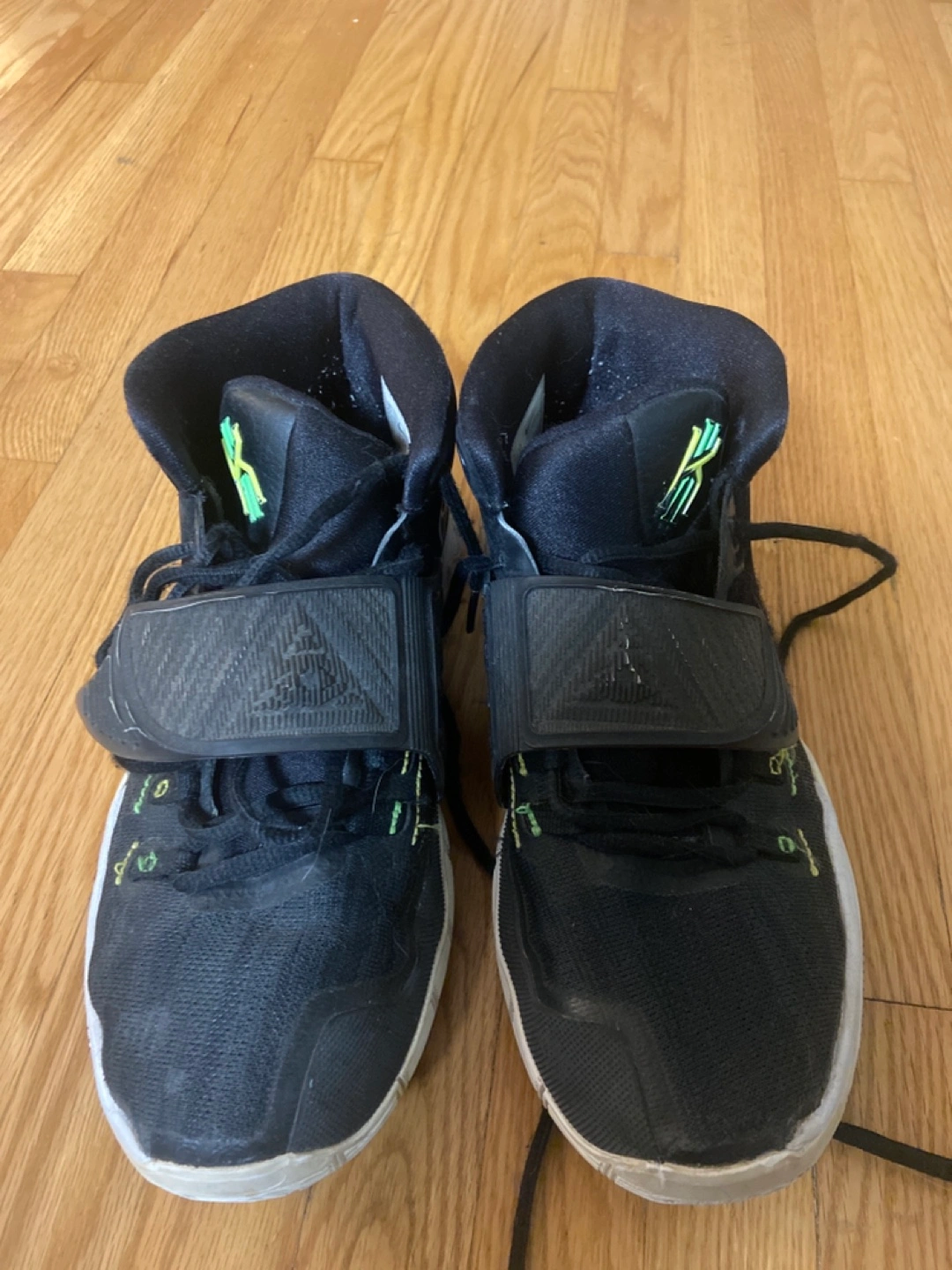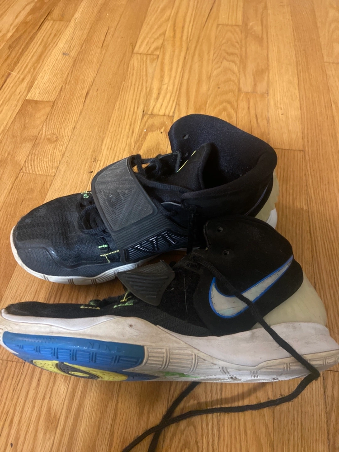 Black, white, and blue basketball shoes with a strap. Size 7y. Asking $10 or best offer.