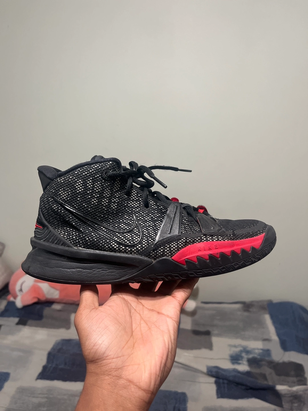 Black sneakers with a red swoosh. Red accents on the soles and heel. Consider adding these to your collection for a daily dose of comfort.