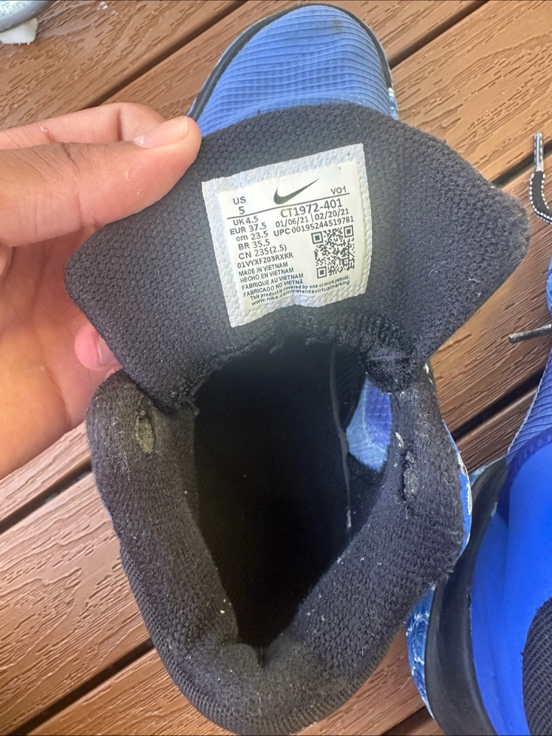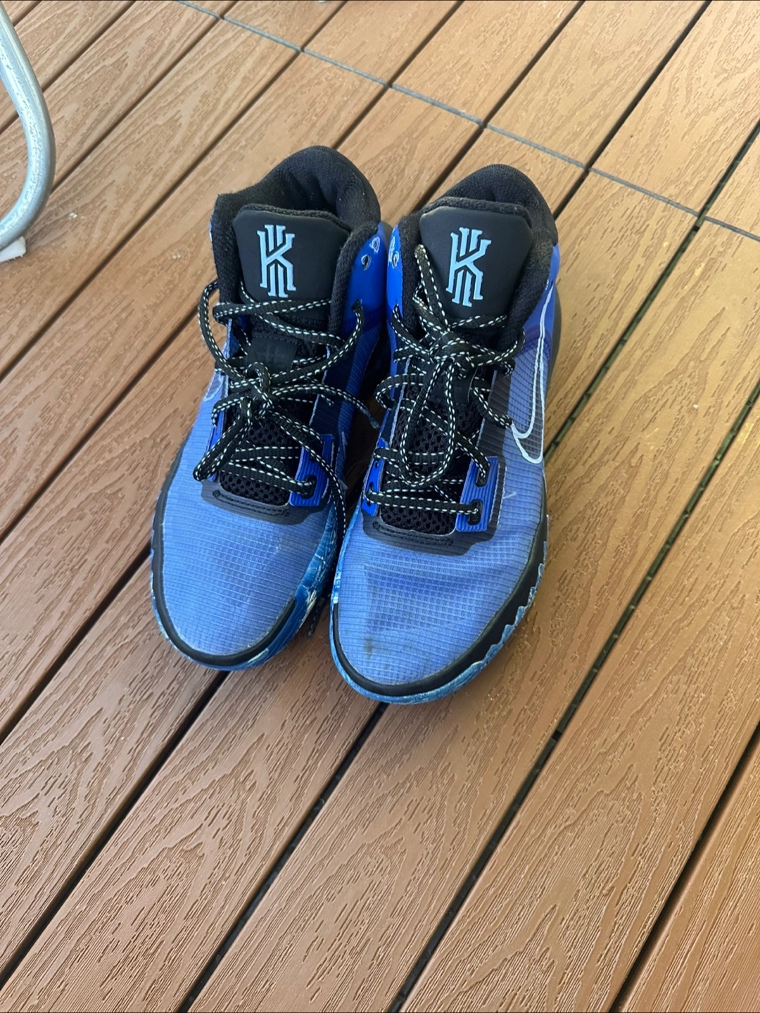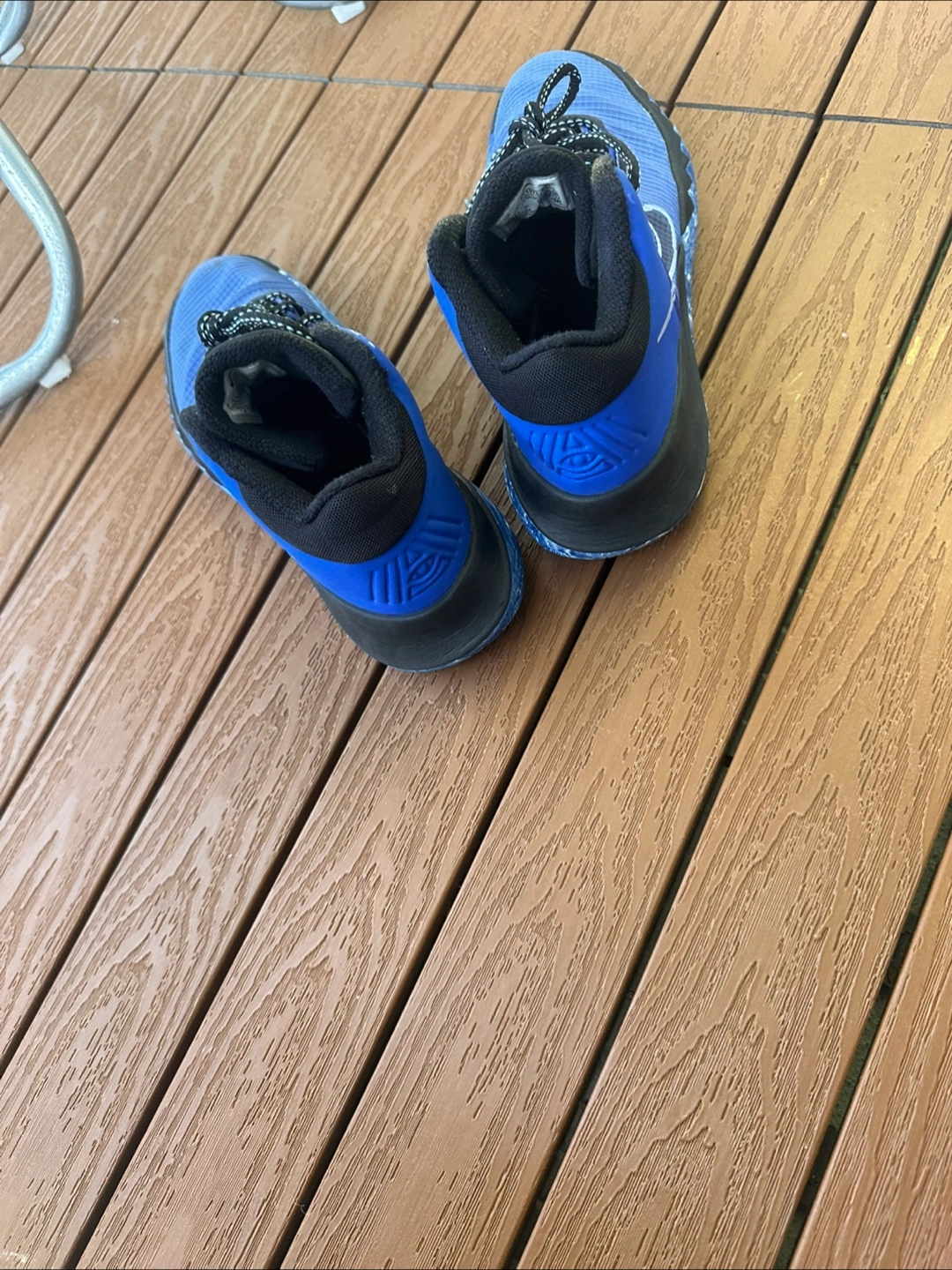 Bright blue basketball shoes. Features black laces. The shoe includes blue and black detail.