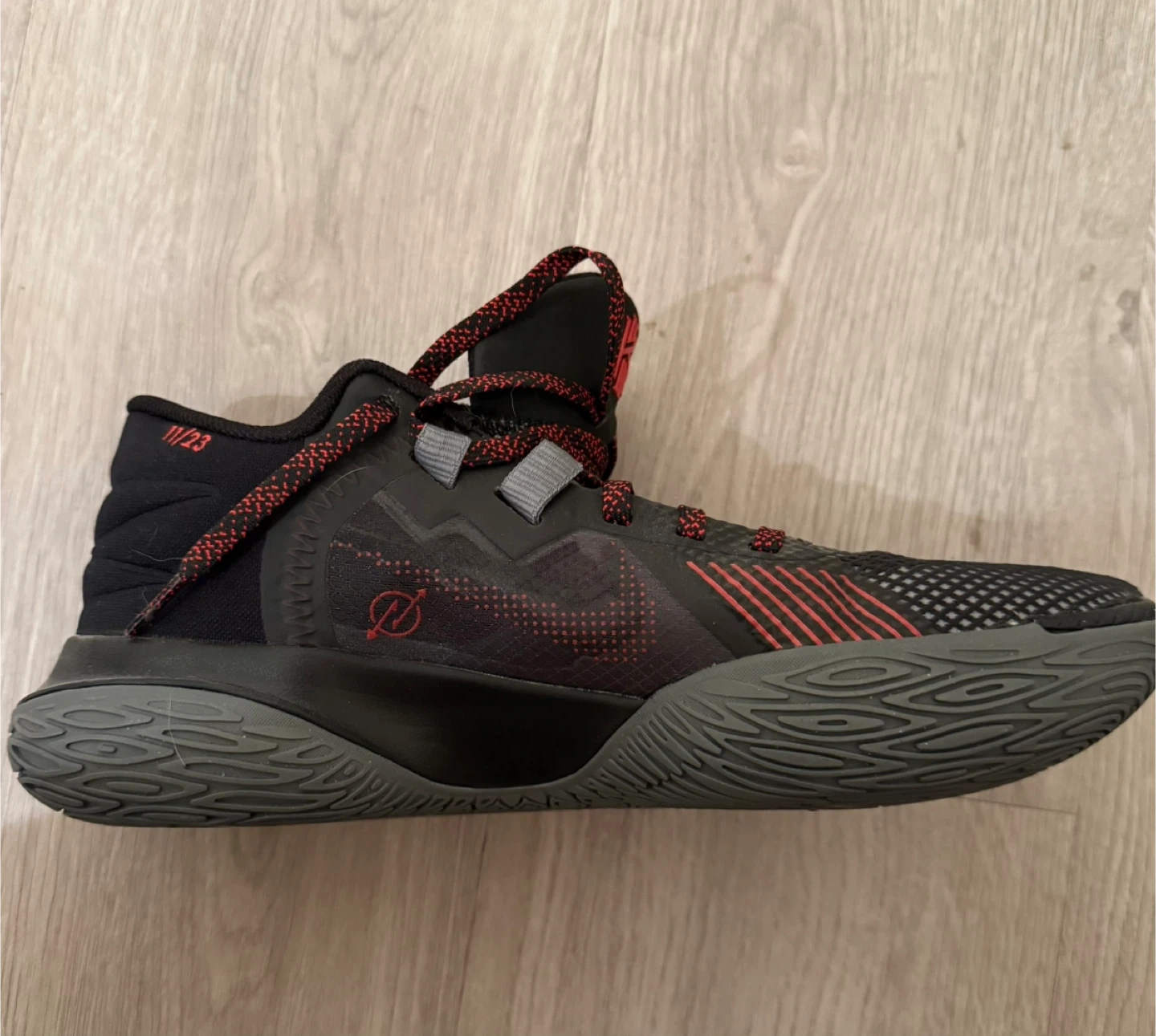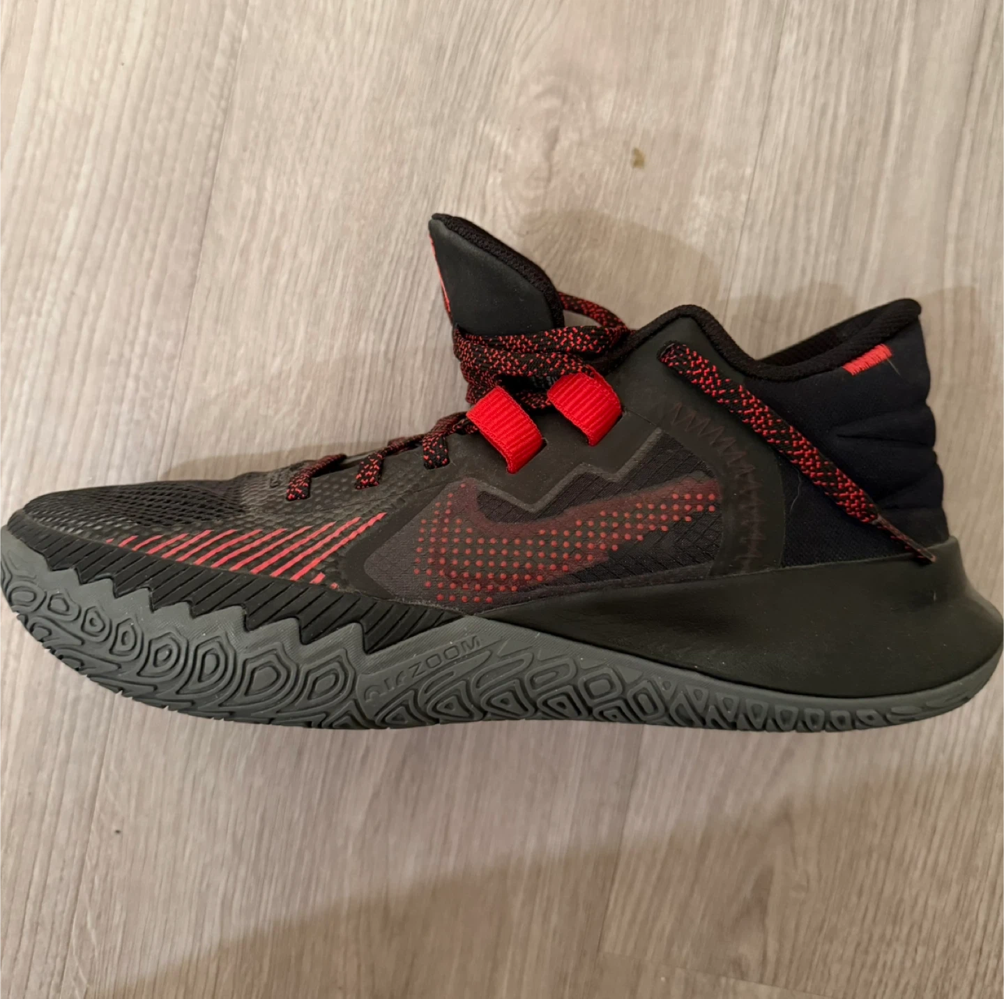 Selling a pair of Nike Kyrie Flytrap 5 basketball shoes in US size 8. These shoes are in great condition and ready for the court or casual wear. The colour scheme is a sleek combination of black and red, making them a stylish choice. They are a men's size US 8, UK 7 Worn only once. Cash only please. Pick up in Thetis Lake area.
