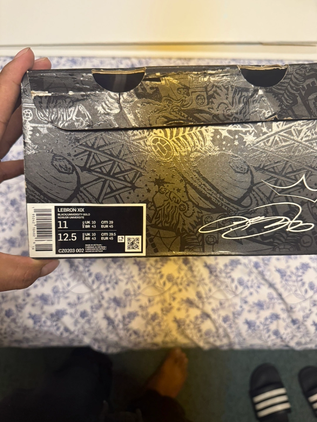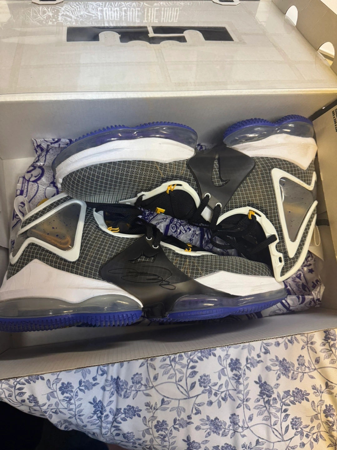 Men's Nike LeBron XIX basketball shoes. Size 11. Black/University Gold colourway. New in box. Includes shoe box and accessories.